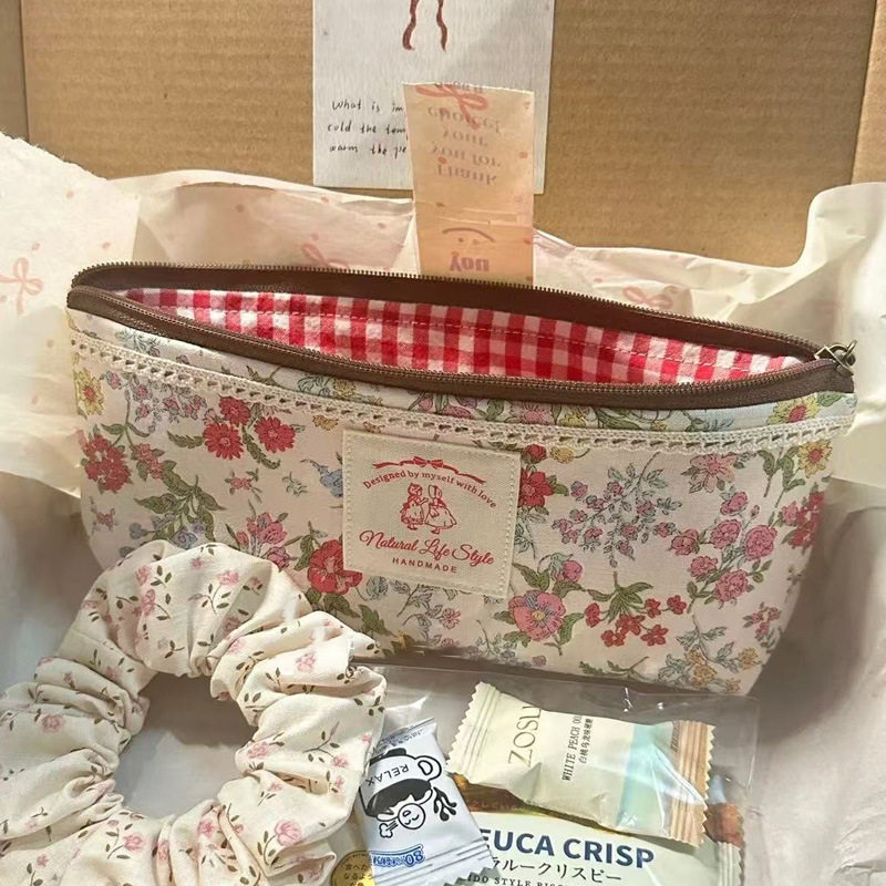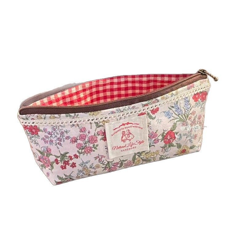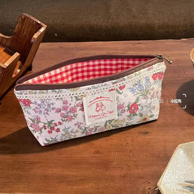 复古碎花笔袋蕾丝拼接文艺文具袋学生大容量化妆包小清新收纳袋