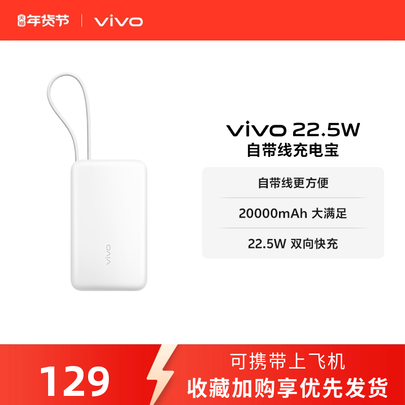 【3C认证】vivo自带线充电宝20000毫安22.5W可上飞机大容量快充便携学生新品户外出行