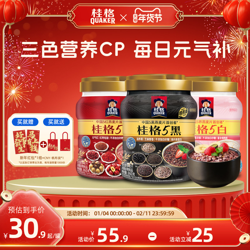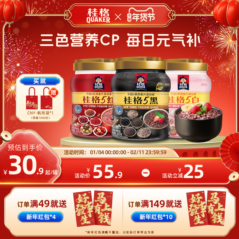 桂格五黑五红即食燕麦麦片860g罐装黑燕麦早餐谷物代餐