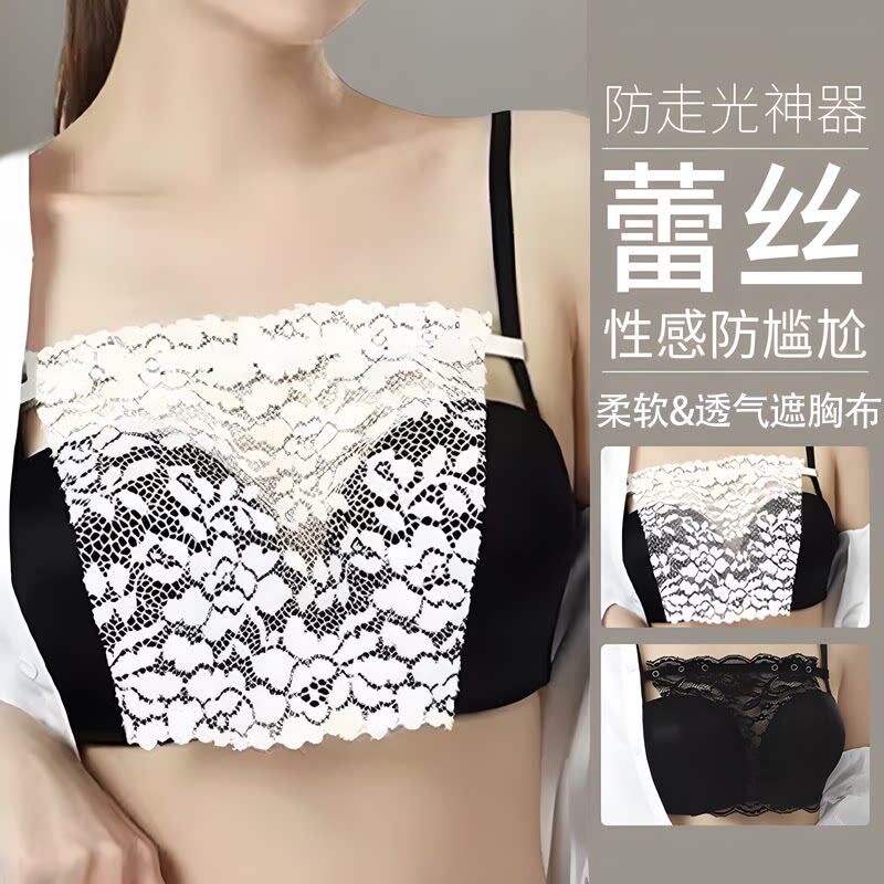 抹胸防走光衣领口太低神器V领防走光一片式抹胸蕾丝夏季衣服假V领
