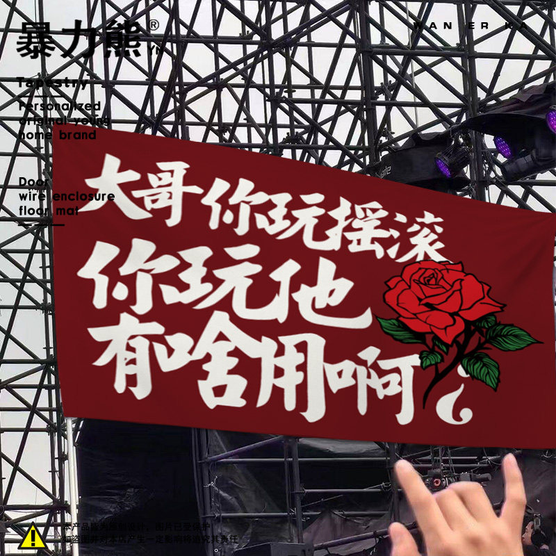 方巾摇滚街头百搭音乐节装饰配饰二手玫瑰乐队句子音乐节装饰 音乐节乐队周边演唱会周边三角巾旗帜方巾周边