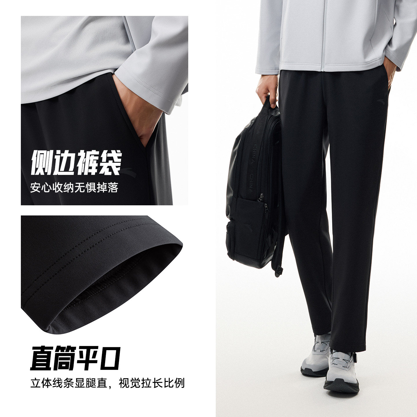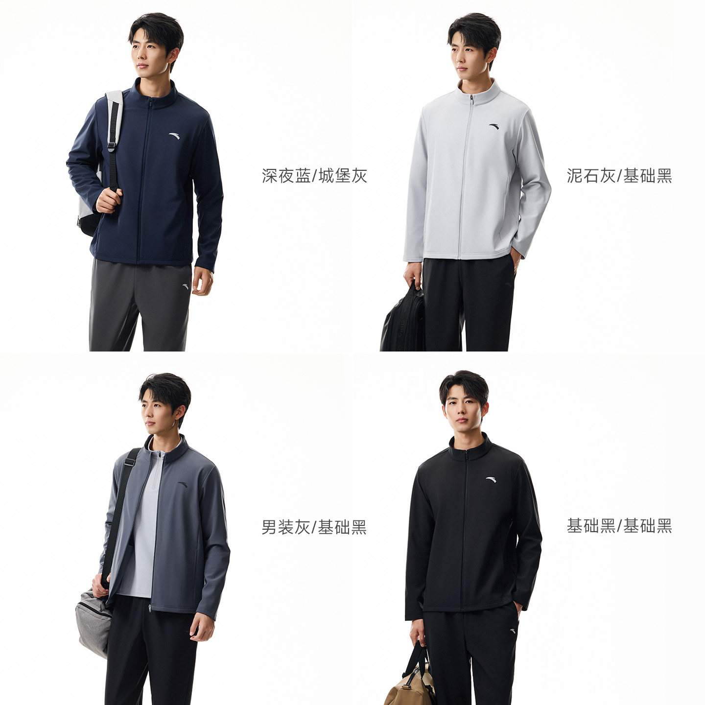 安踏通勤休闲套装男士2026春季新款防泼水立领外套运动长裤两件套