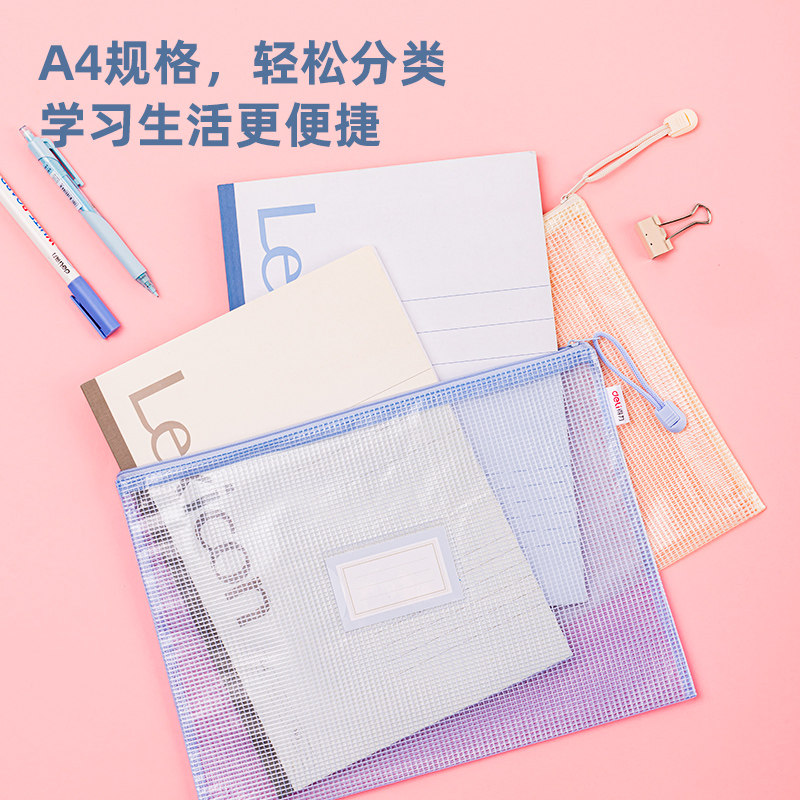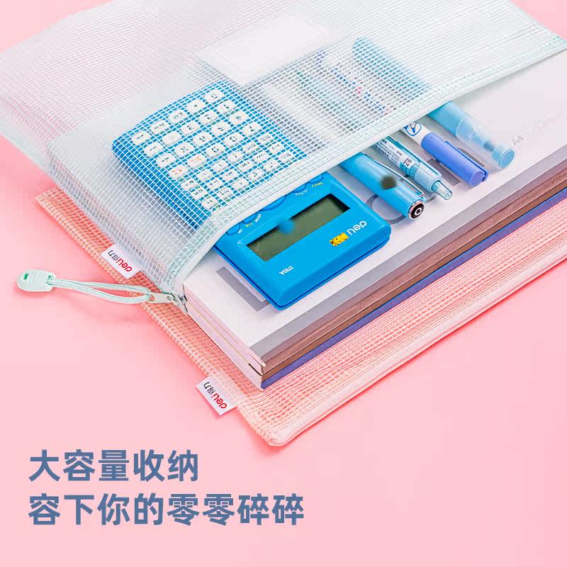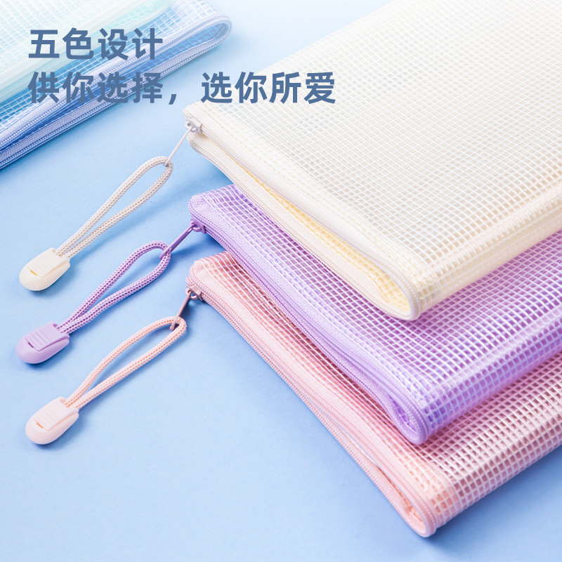晨光文具学科科目分类袋小学生文件袋拉链式试卷收纳袋透明网纱双层大容量书袋作业资料a4考试专用袋票据产检