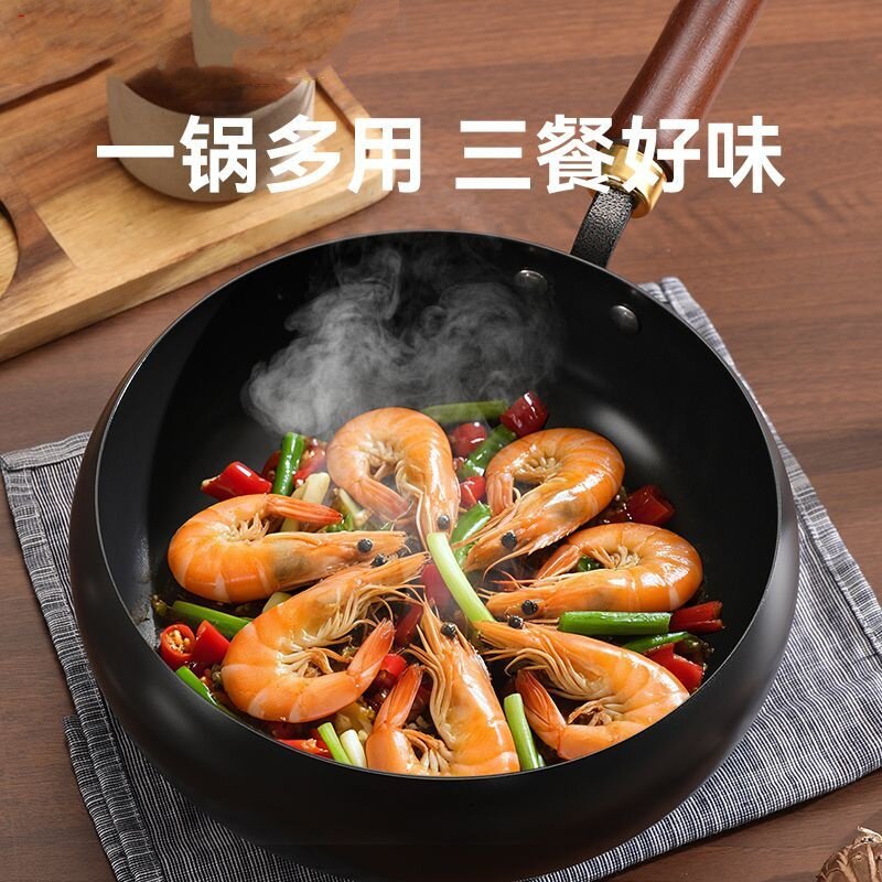 铁锅官方旗舰炒菜锅老式炒锅铁锅家用不粘锅无涂层燃气灶适用