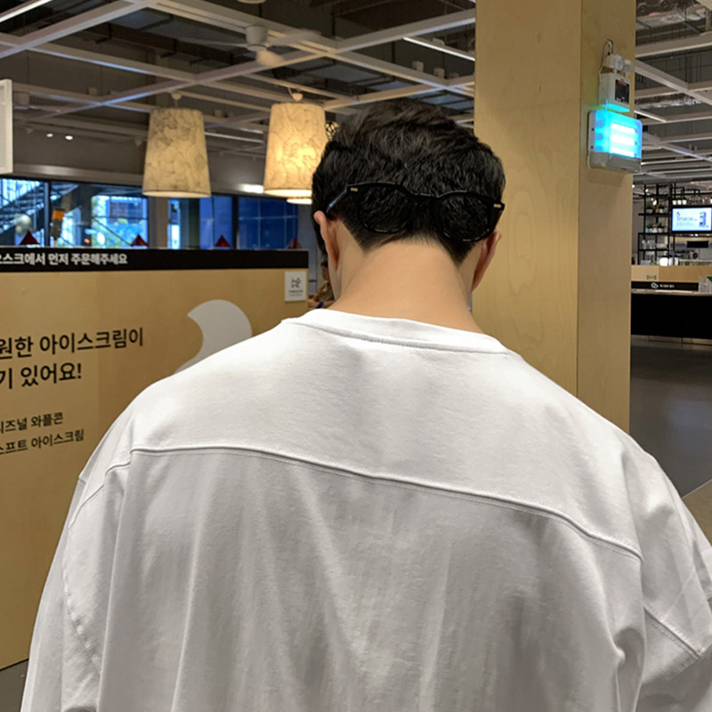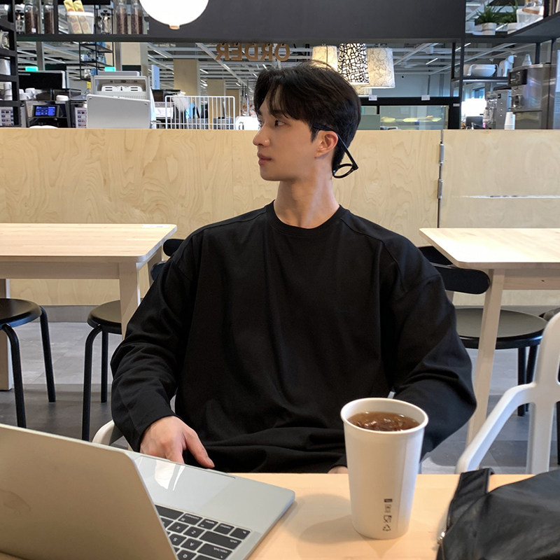 INS纯棉25韩国ins复古基础款纯色秋季打底衫内搭男女长袖T恤bf风