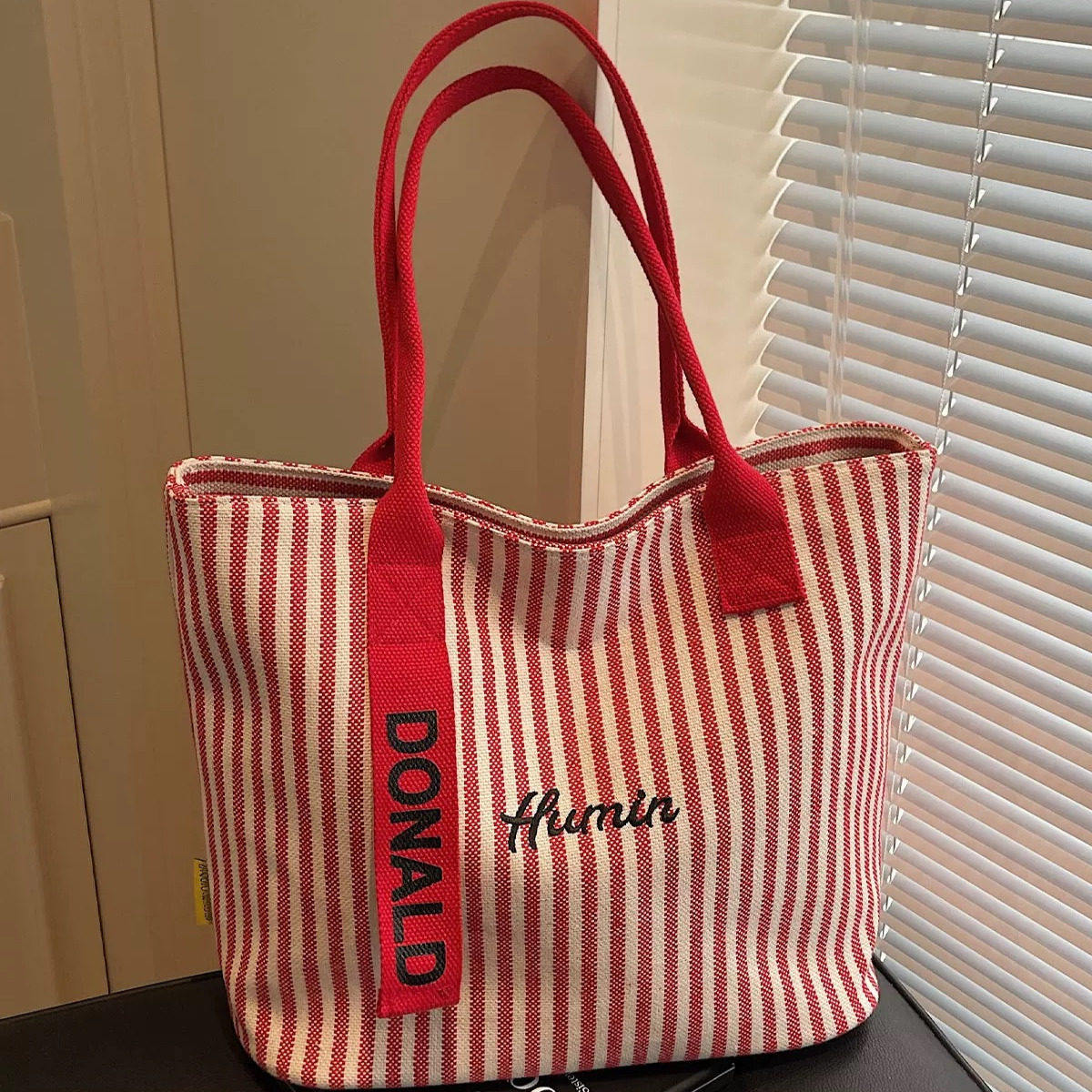 条纹大容量帆布包包女2026新款时尚手提单肩购物袋休闲通勤托特包
