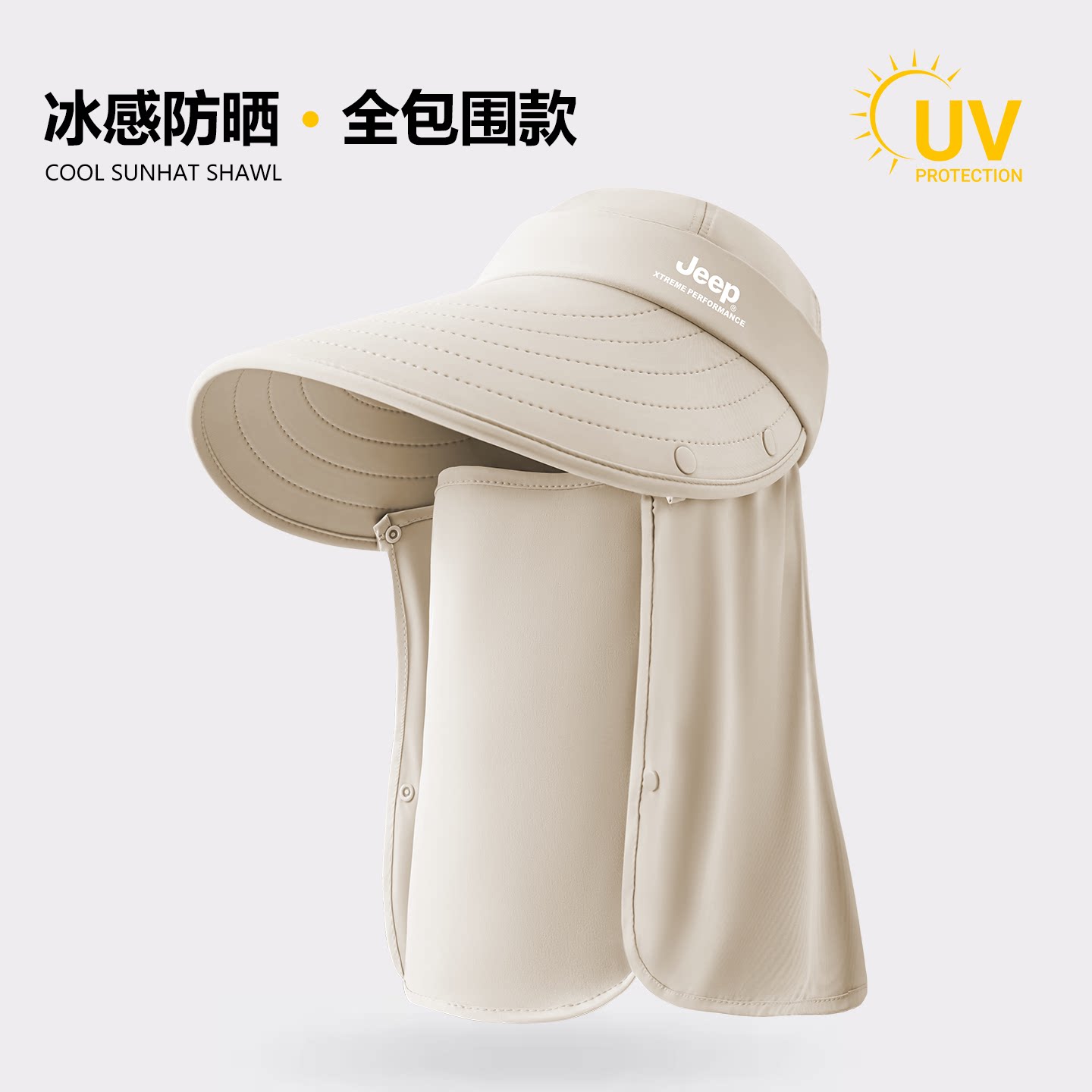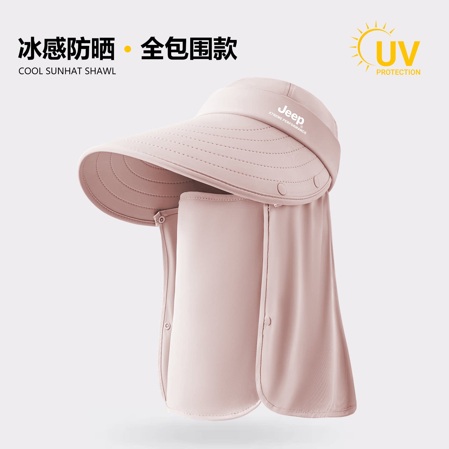 jeep吉普夏季女士防紫外线披肩防晒帽户外钓鱼徒步电动车遮阳帽子
