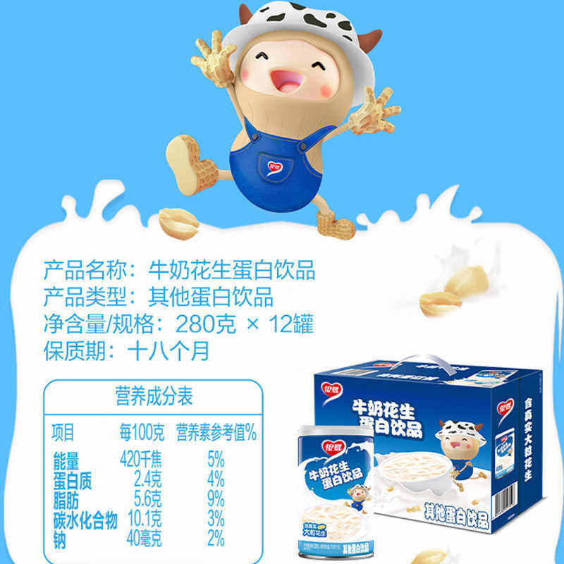 银鹭牛奶花生280g*12罐早餐奶花生饮料整箱早餐花生牛奶罐装饮品