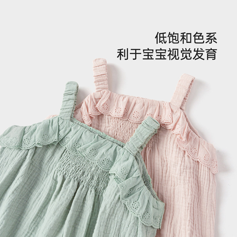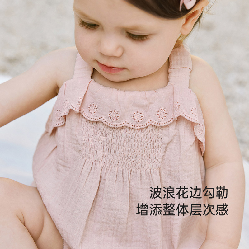 babylove女宝宝吊带包屁衣夏季纯棉纱布三角哈衣甜美花边透气夏装