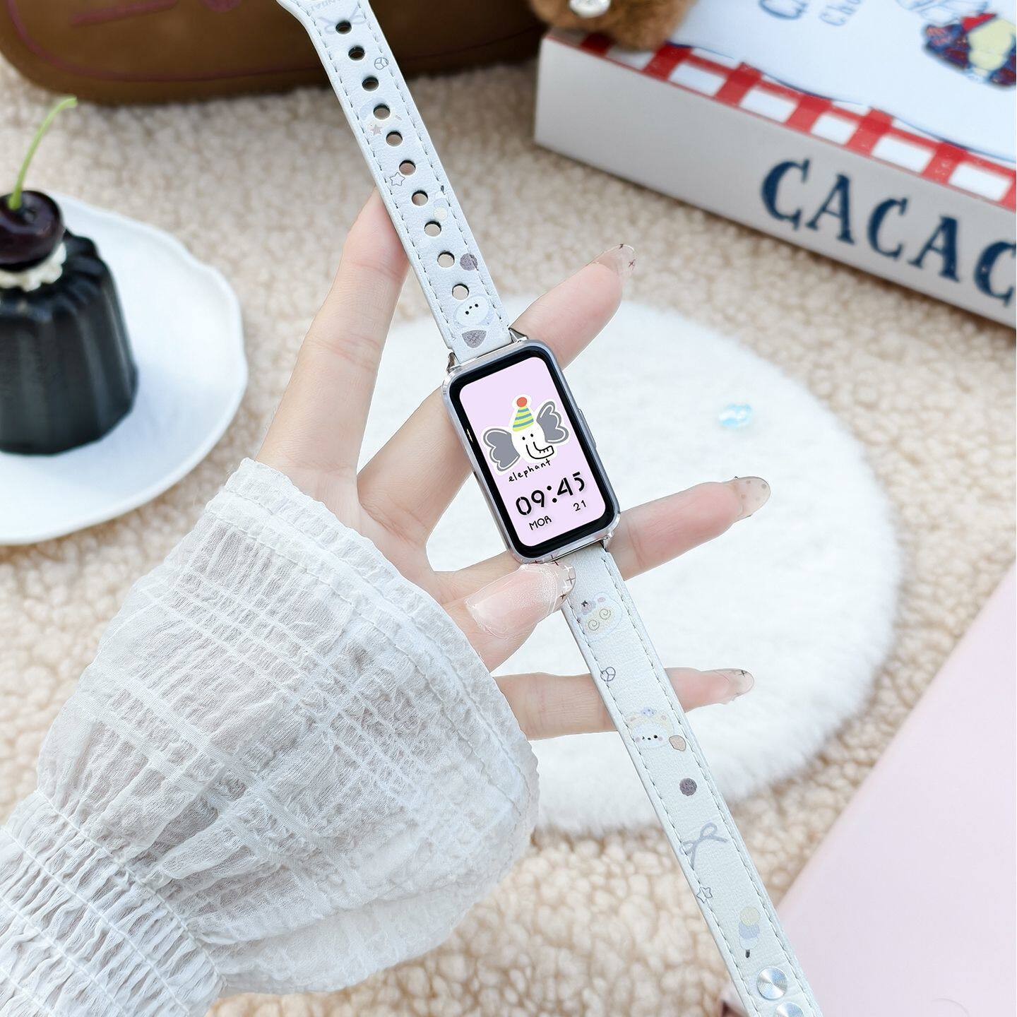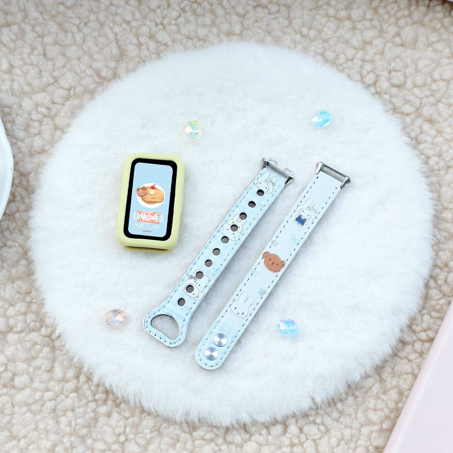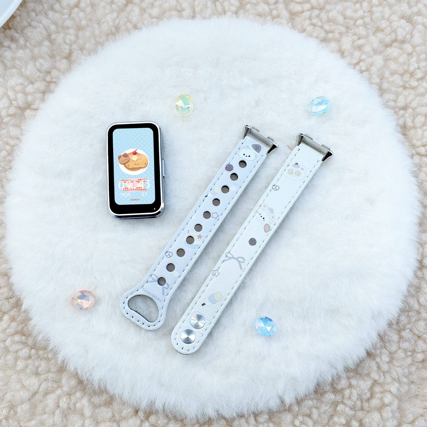 【兔耳KT】适用于Huawei手环10/9/8NFC表带皮质华为腕带可爱双钉7创意女款荣耀手环10/9高级彩印keep