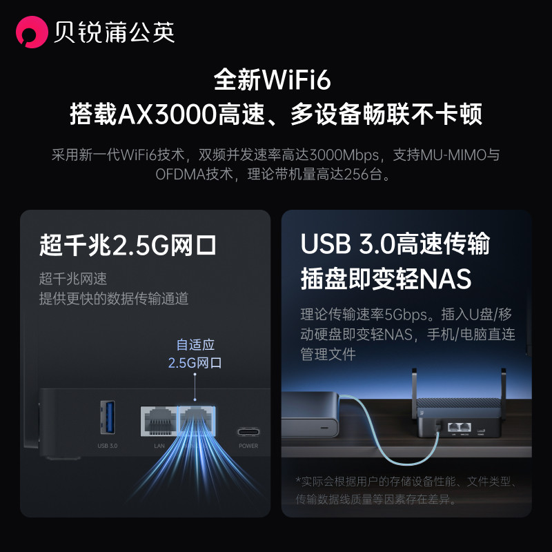 蒲公英X1Pro千兆AX3000路由器2.5G网口私有云NAS家庭网络存储双频wifi6家用高速迷你便携异地组网内网穿透