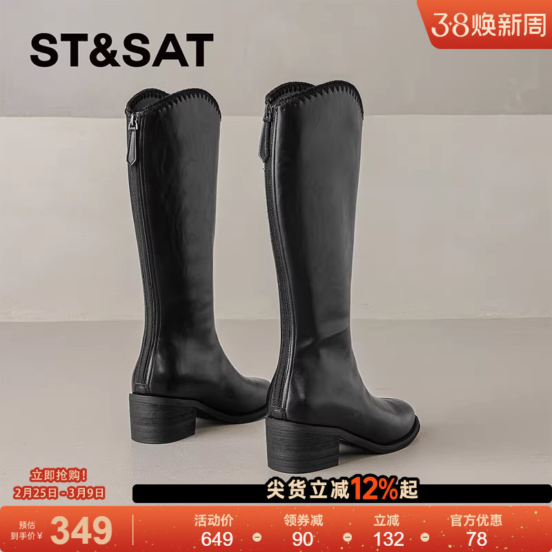 星期六黑色长筒靴女2026新款春季粗跟不过膝显瘦堆堆靴英伦骑士靴