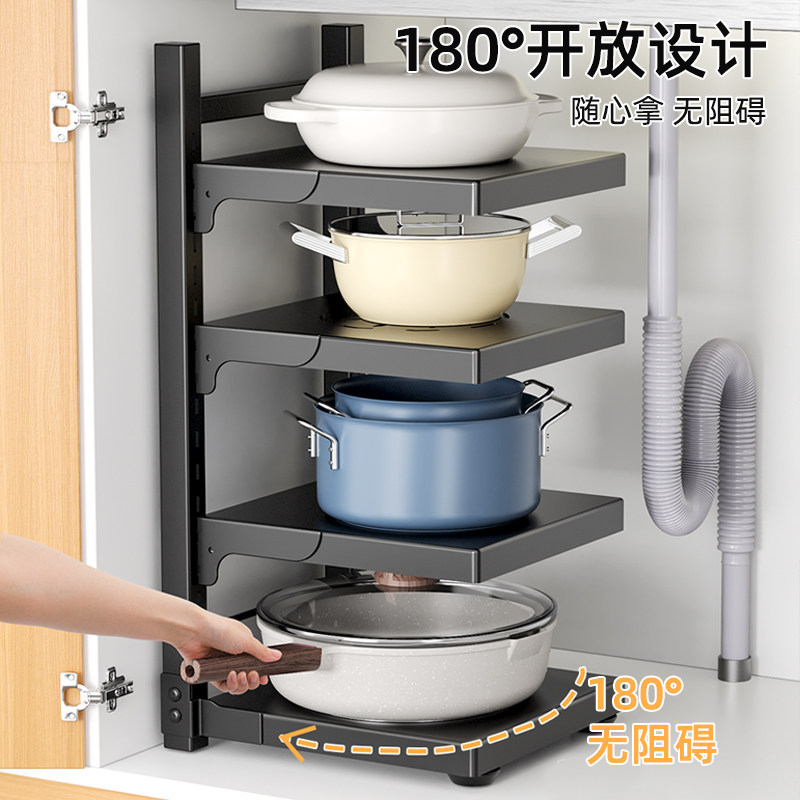 厨房锅具收纳层架家用多层置物架整体橱柜内分层水槽下台面多功能