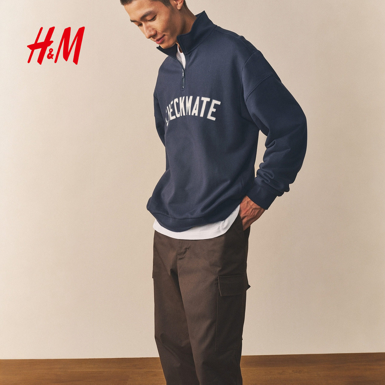 HM男装女装卫衣2025冬季新款重磅美式宽松拉链情侣装套衫1307187