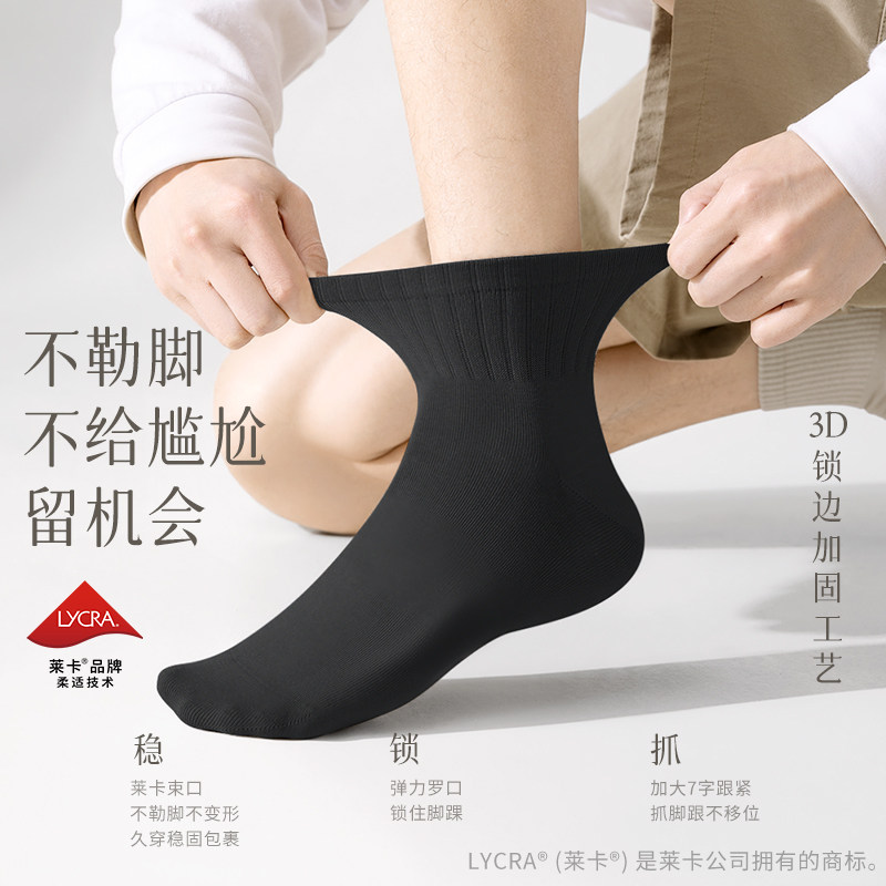 商务棉袜|蕉内银皮3系男士中筒袜吸汗防臭透气袜子西装袜黑色长袜