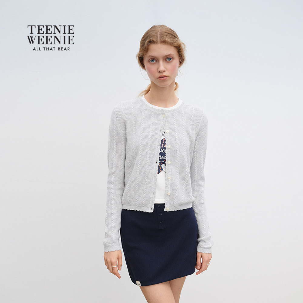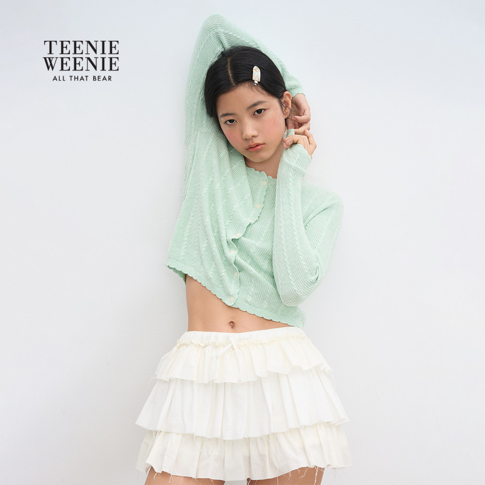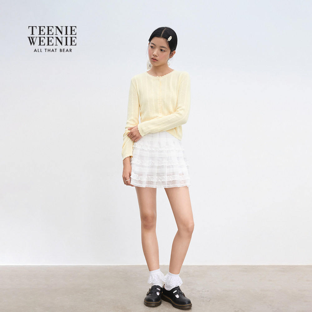 TEENIEWEENIE bearnova2025秋季新款女装气质甜美花边领针织开衫
