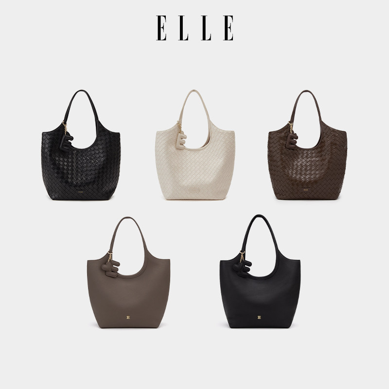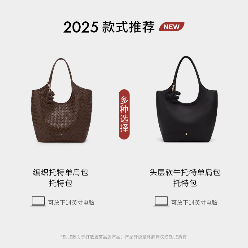 ELLE女包头层牛皮编织手提菜篮子包慵懒风托特包大容量腋下手提包