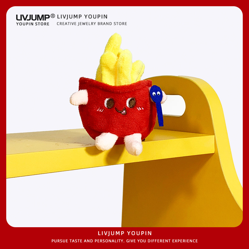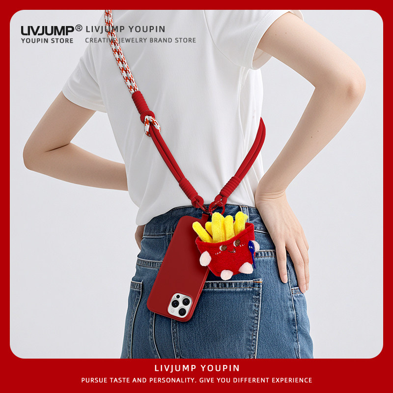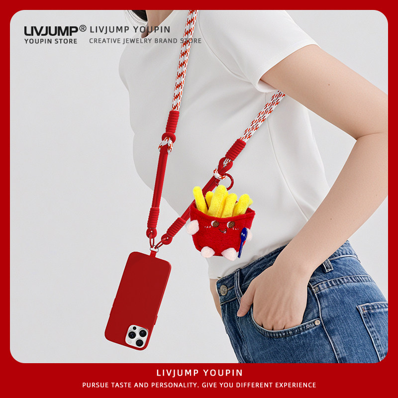 网红卡通薯条毛绒公仔手机挂绳长款斜挎可肩背带撞色编织绳小众潮