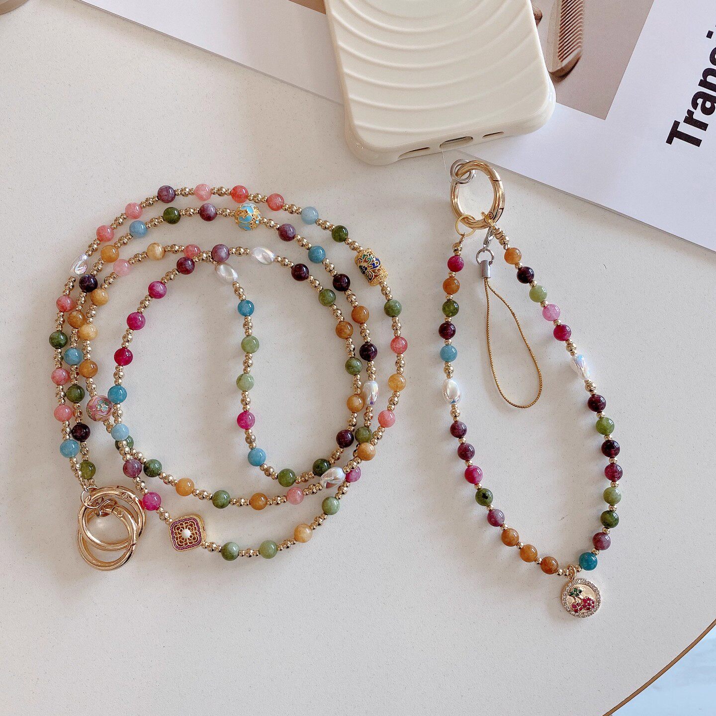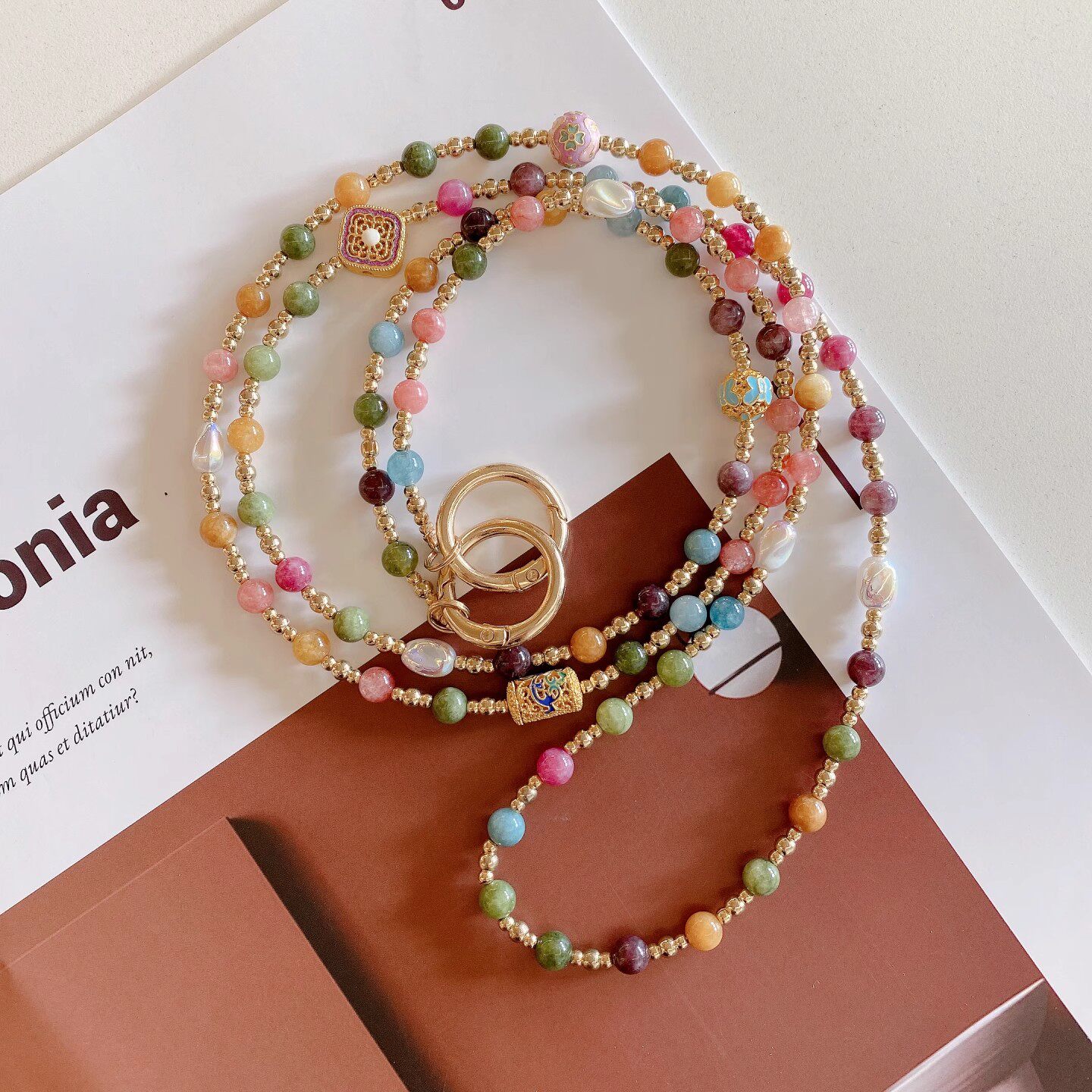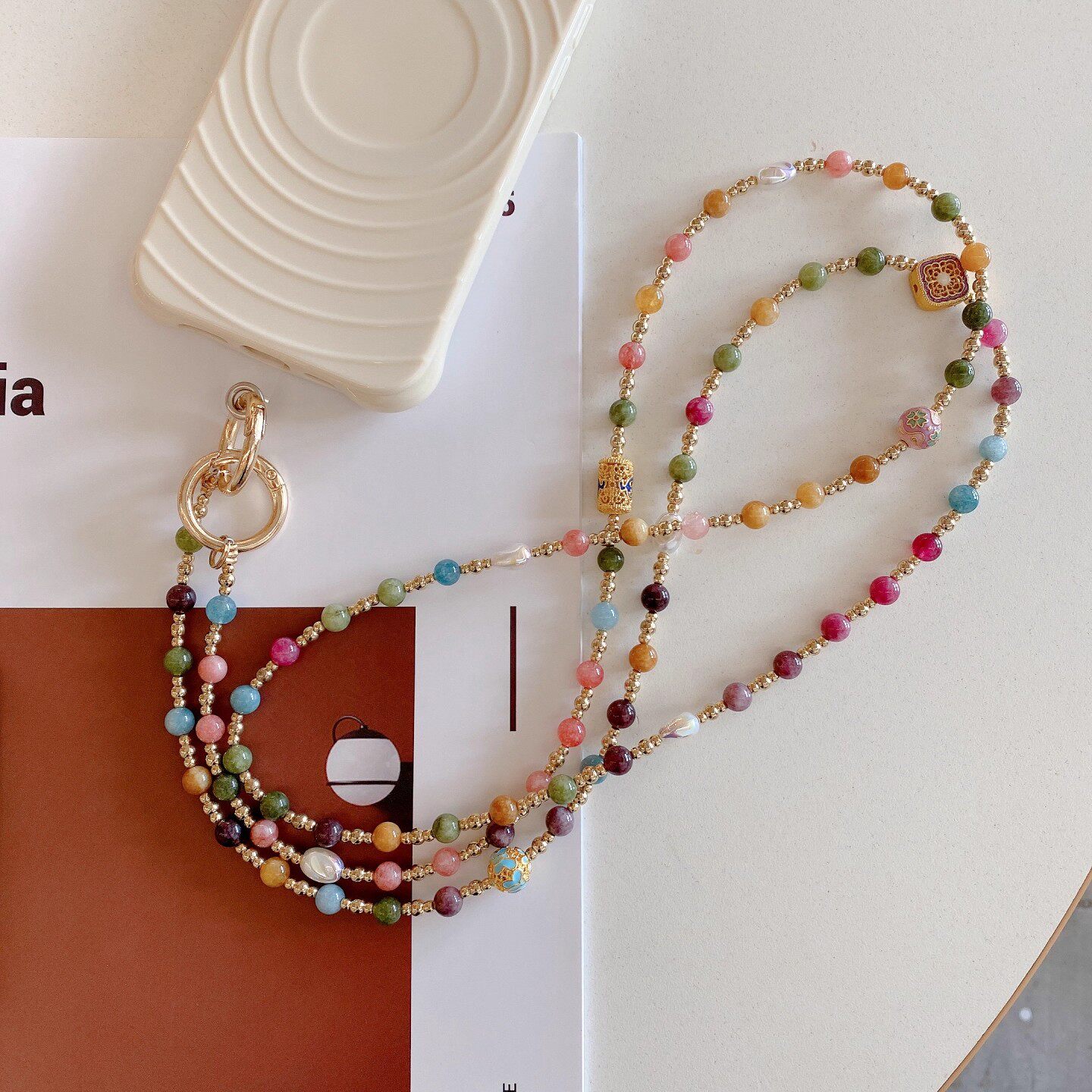 日本DEMIU彩色碧玺串珠手机链挂手腕轻奢手机挂绳斜挎手机链