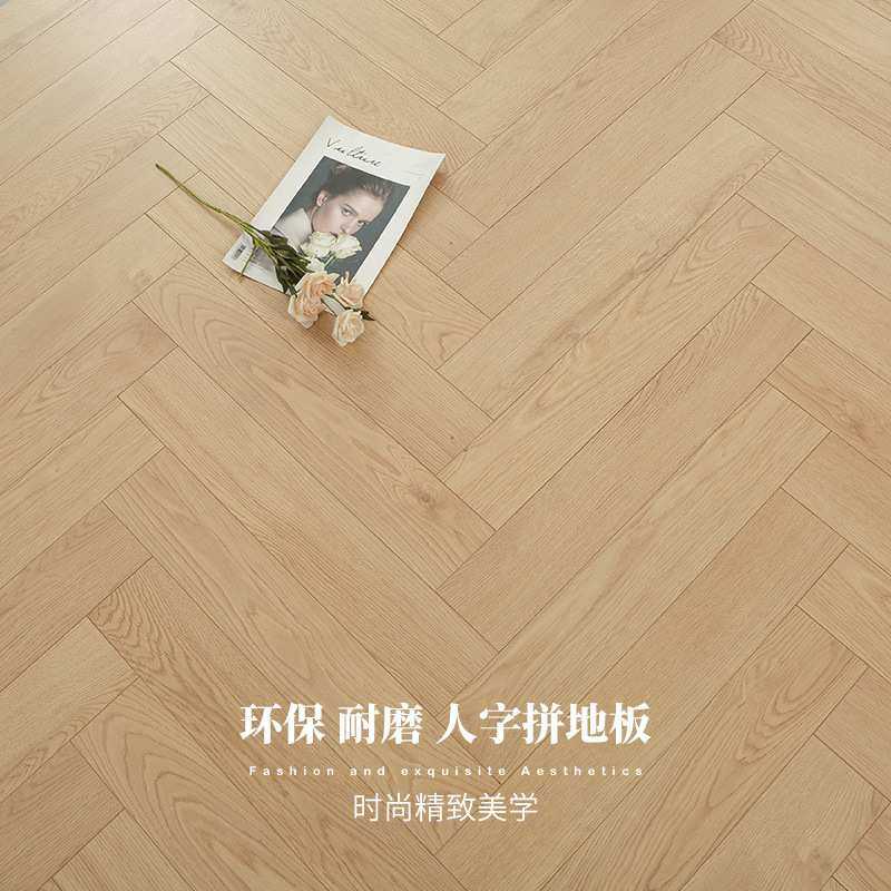 强化复合木地板12mm艺术人字拼灰色黄橡木纹原木色奶油风环保锁扣