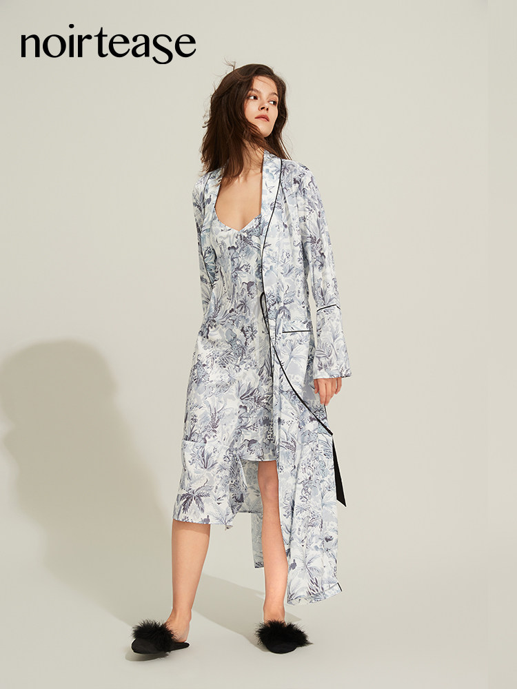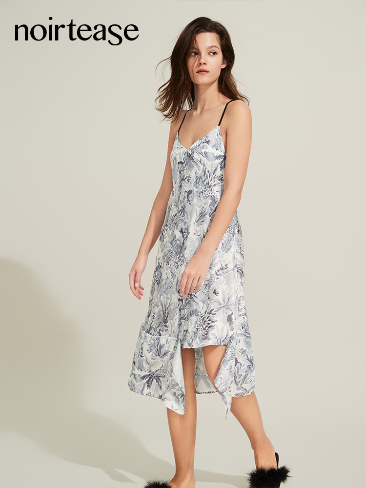 NoirTease奈黎诗夏季薄款性感丝质吊带睡裙女士V领印花家居服睡衣