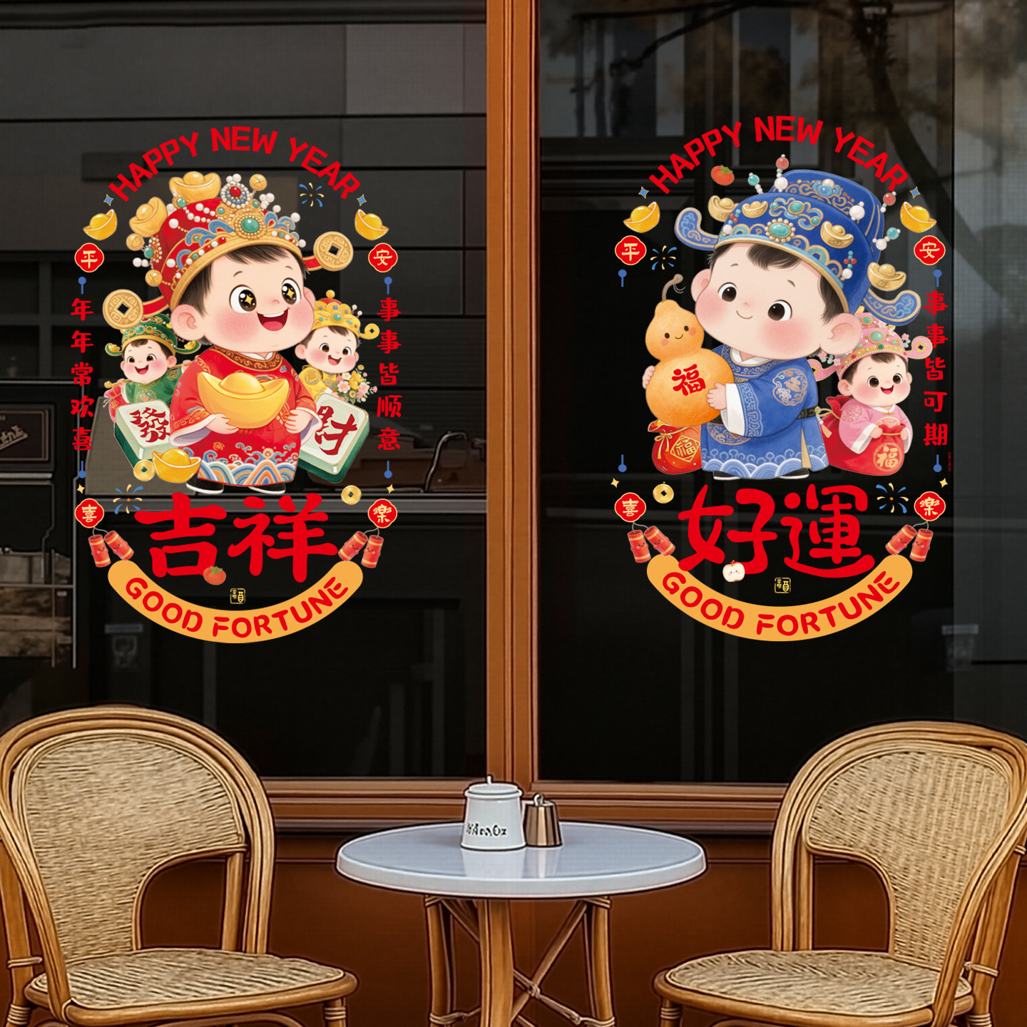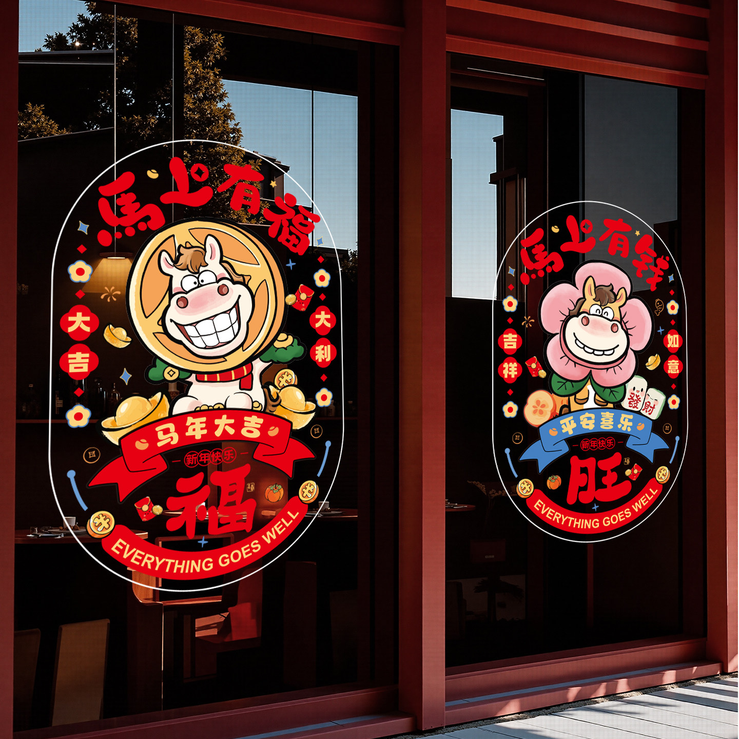 岚树2026年新年窗花静电贴过年马年春节装饰品橱窗玻璃贴福字门贴