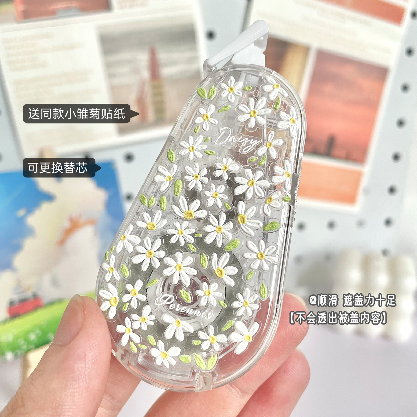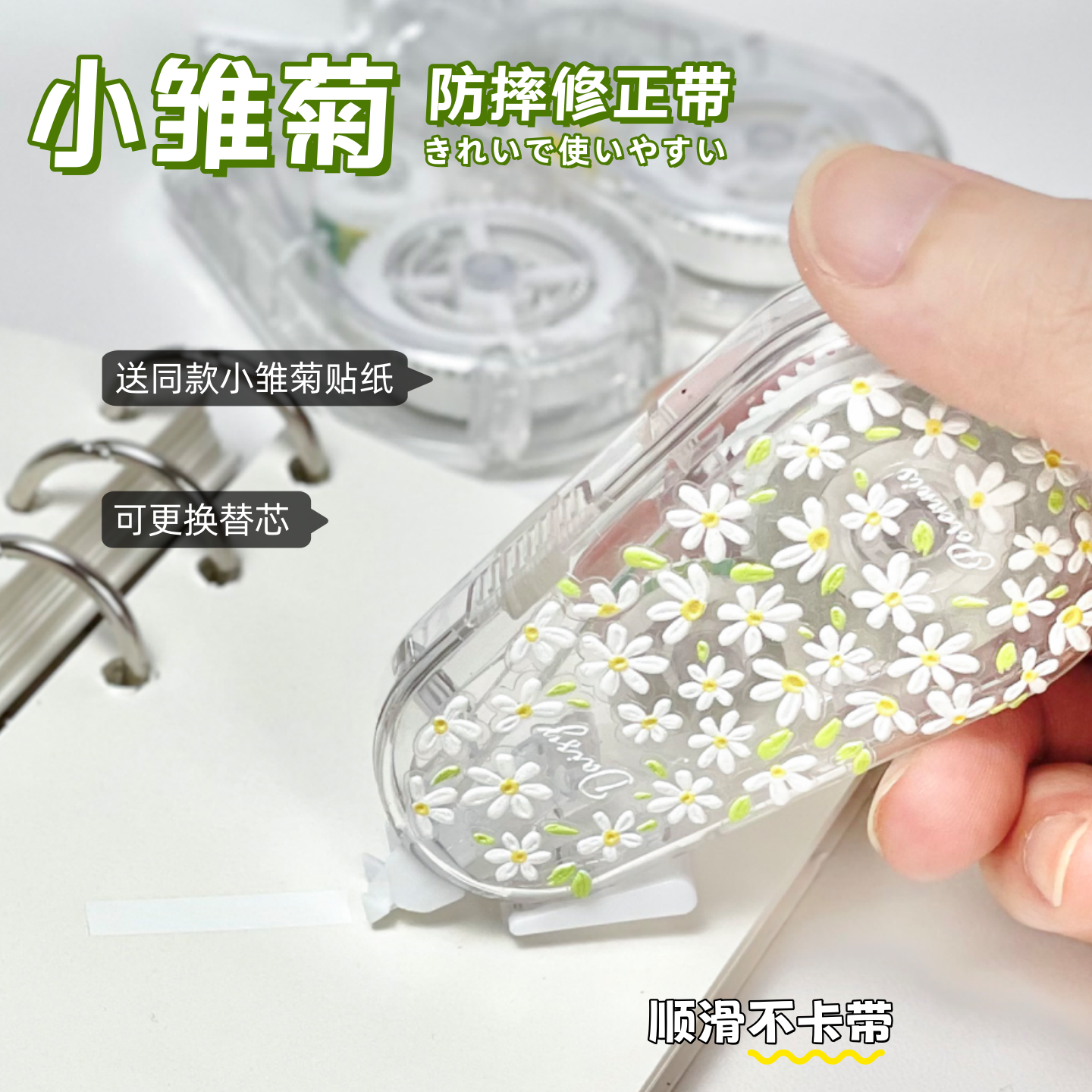 小雏菊!修正带小学生专用初中生专用高颜值日式小碎花涂改带女生无痕去字修改diy可爱可替换芯小学生改正带