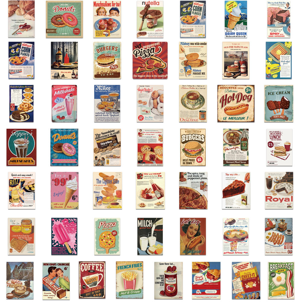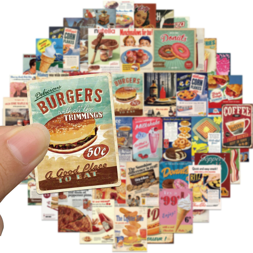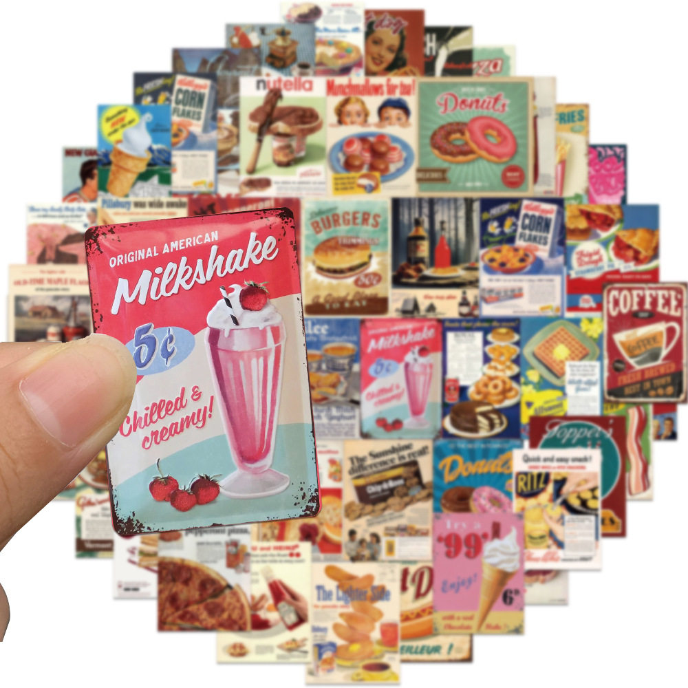 50张欧美式复古风食物海报贴纸高颜值怀旧英文艺创意装饰防水贴画