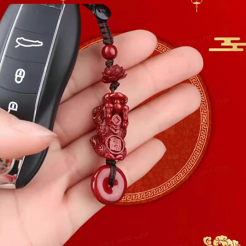朱砂貔貅汽车钥匙扣挂件吊坠朱砂男女创意钥匙扣