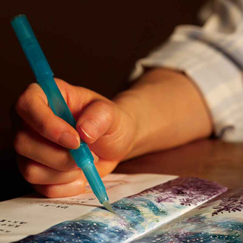 自来水笔套装水粉固体水彩颜料画笔勾线彩绘平头尖头储水毛笔软头
