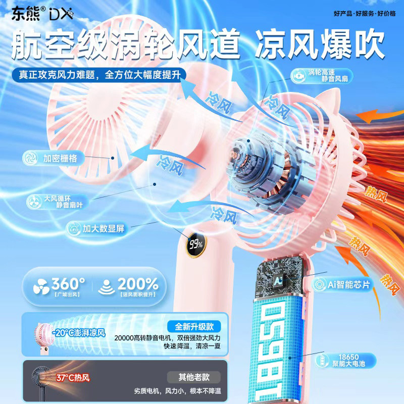 2026新款手持小风扇可爱便携式随身小型静音迷你学生usb可充电超长续航大风力宿舍办公室桌面儿童制冷电风扇