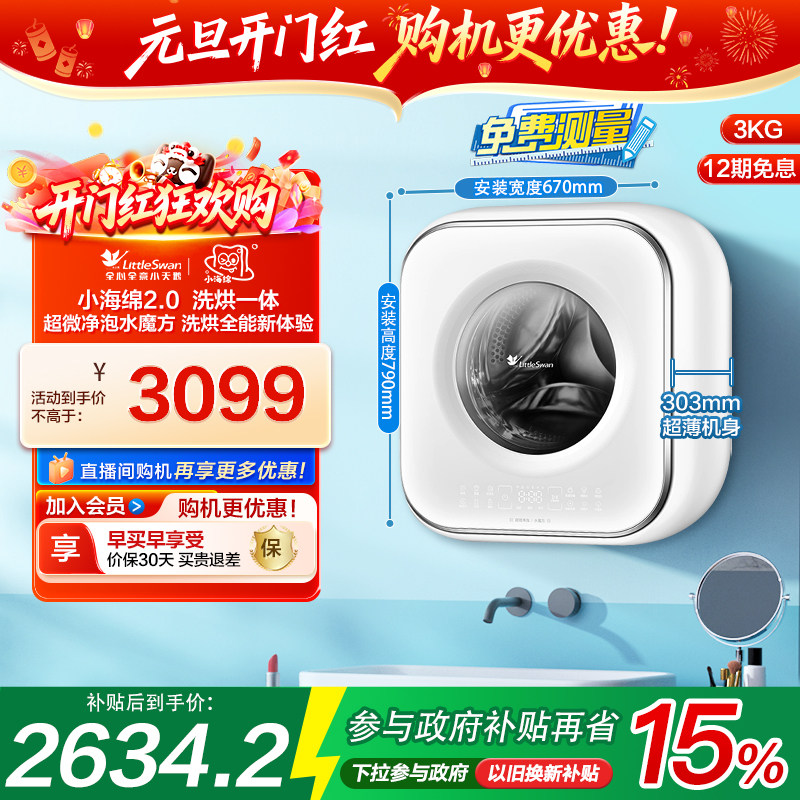 小天鹅3kg小海绵2.0迷你洗烘母婴儿宝宝内衣全自动壁挂洗衣机M80W