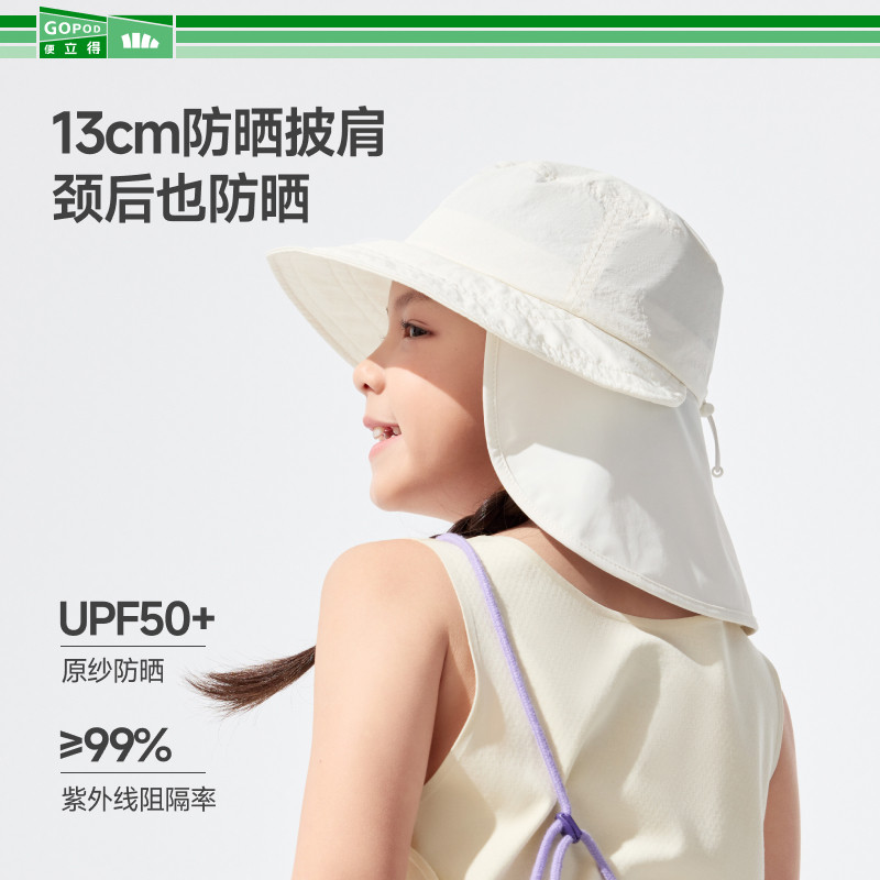 蕉下儿童防晒帽男女童宝宝新款海边沙滩遮阳帽檐披肩折叠渔夫帽