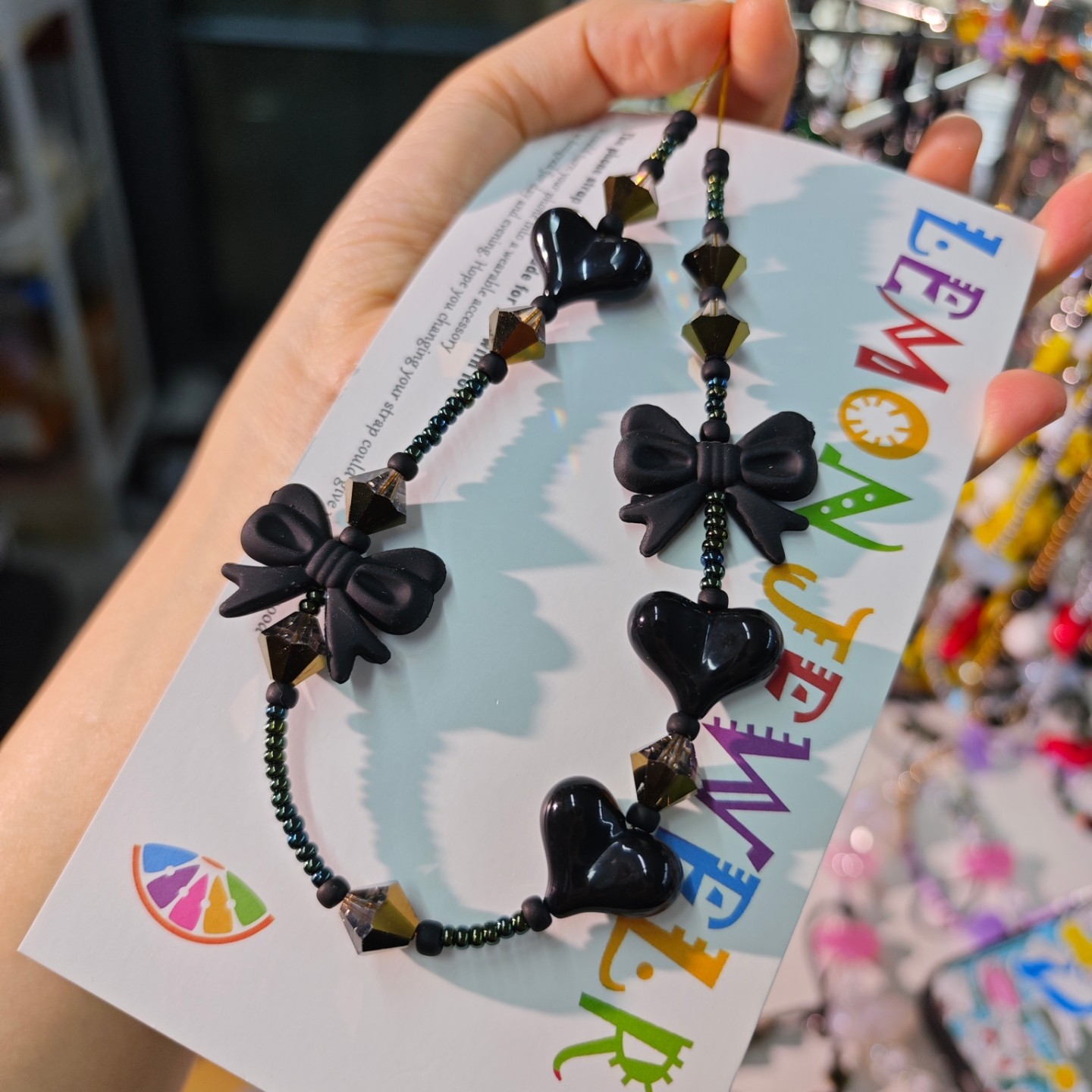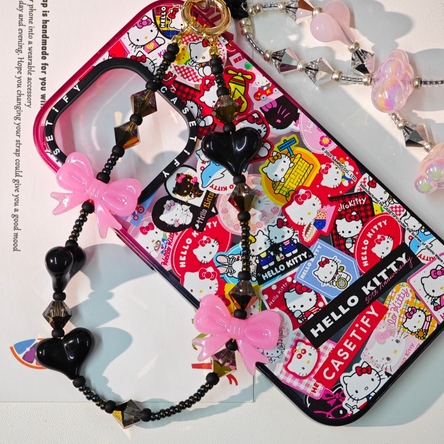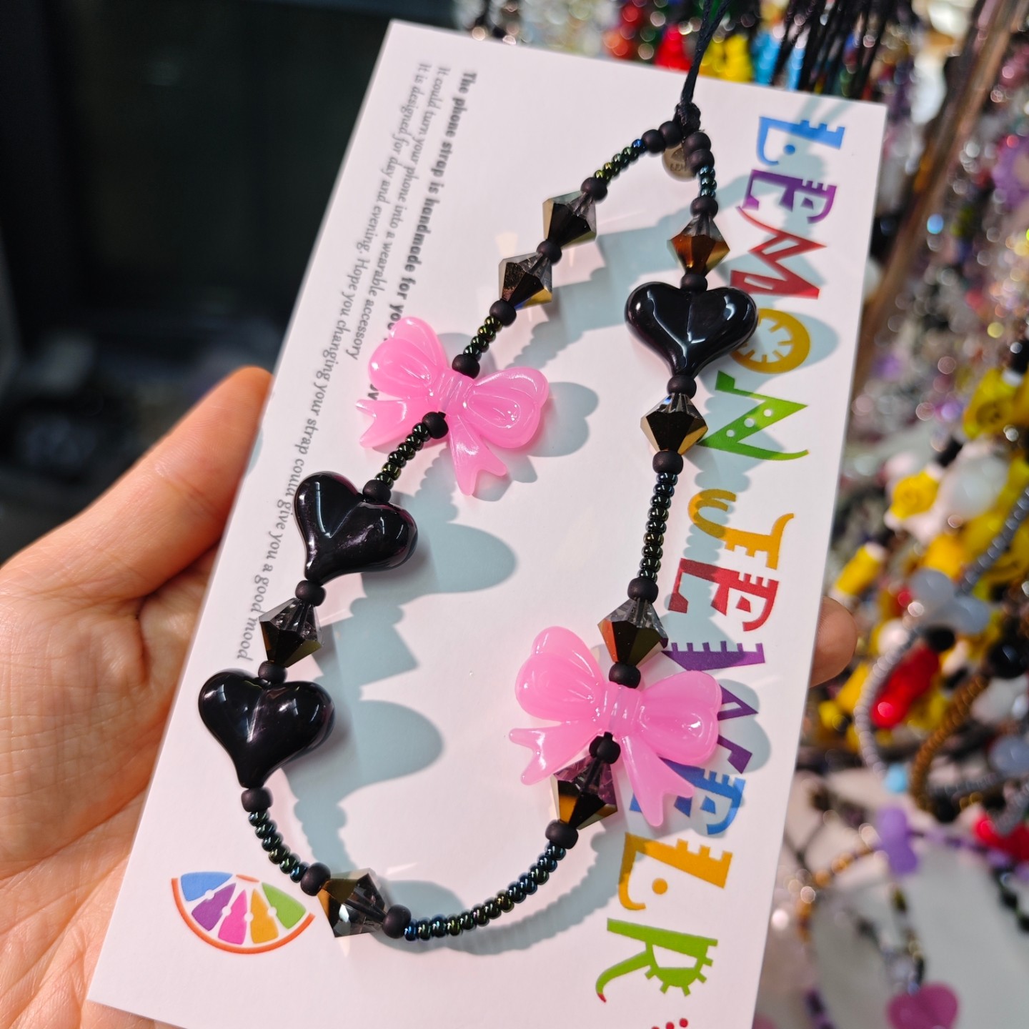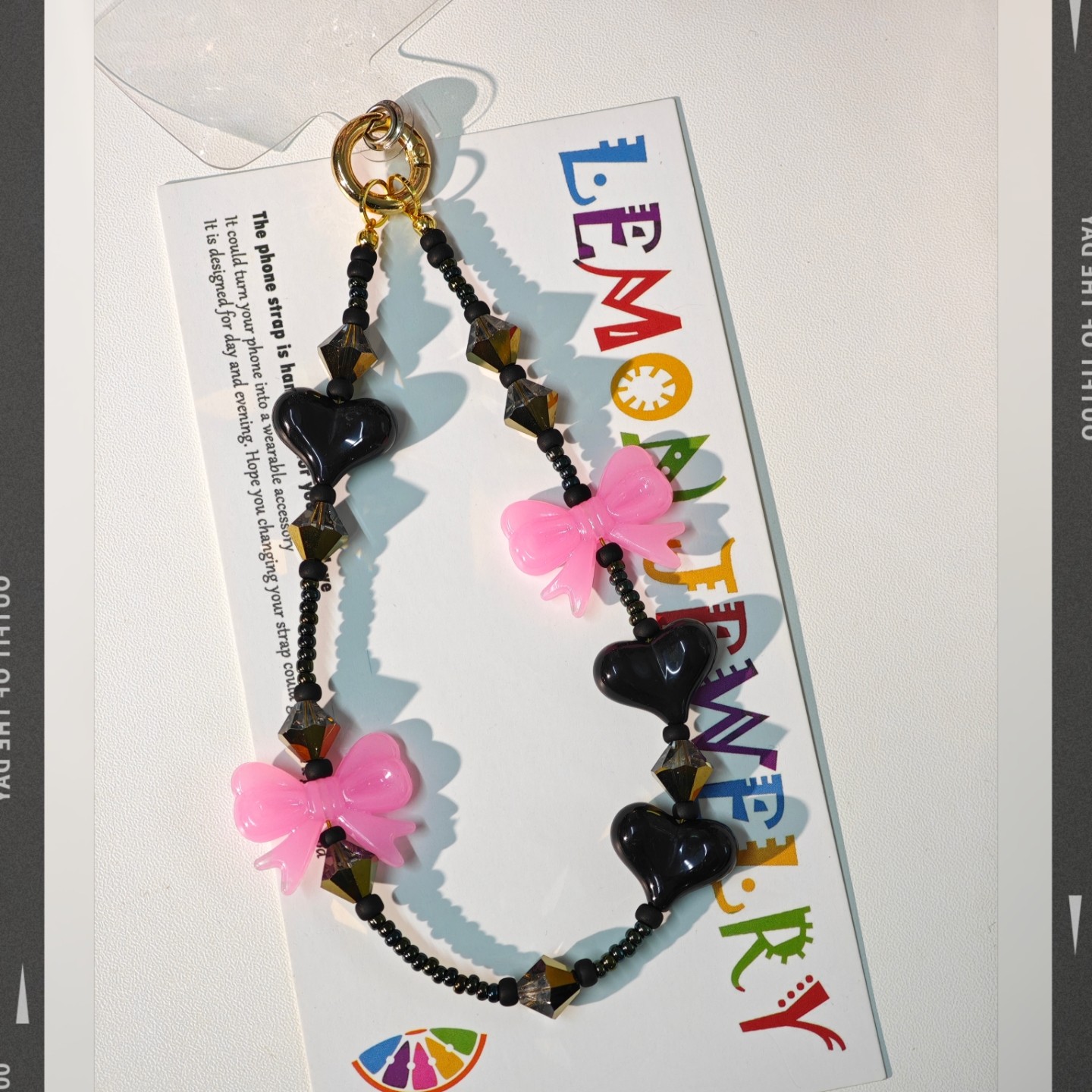 blackpink黑粉原创设计蝴蝶结桃心爱心手机链挂绳~施华洛水晶