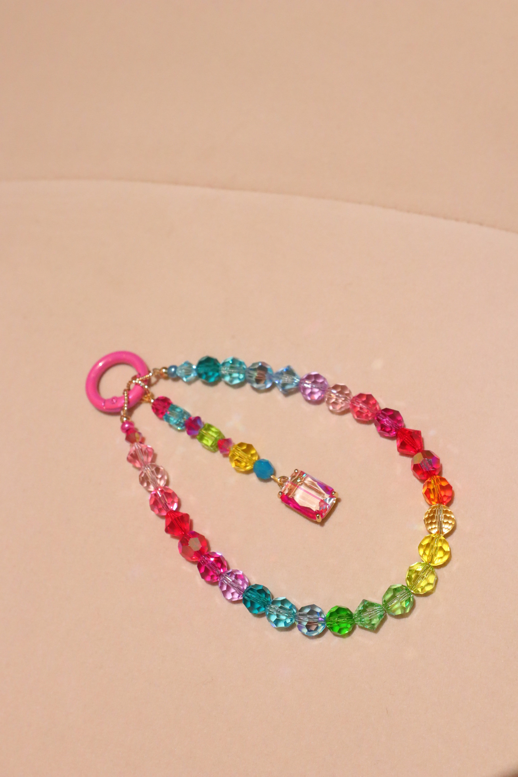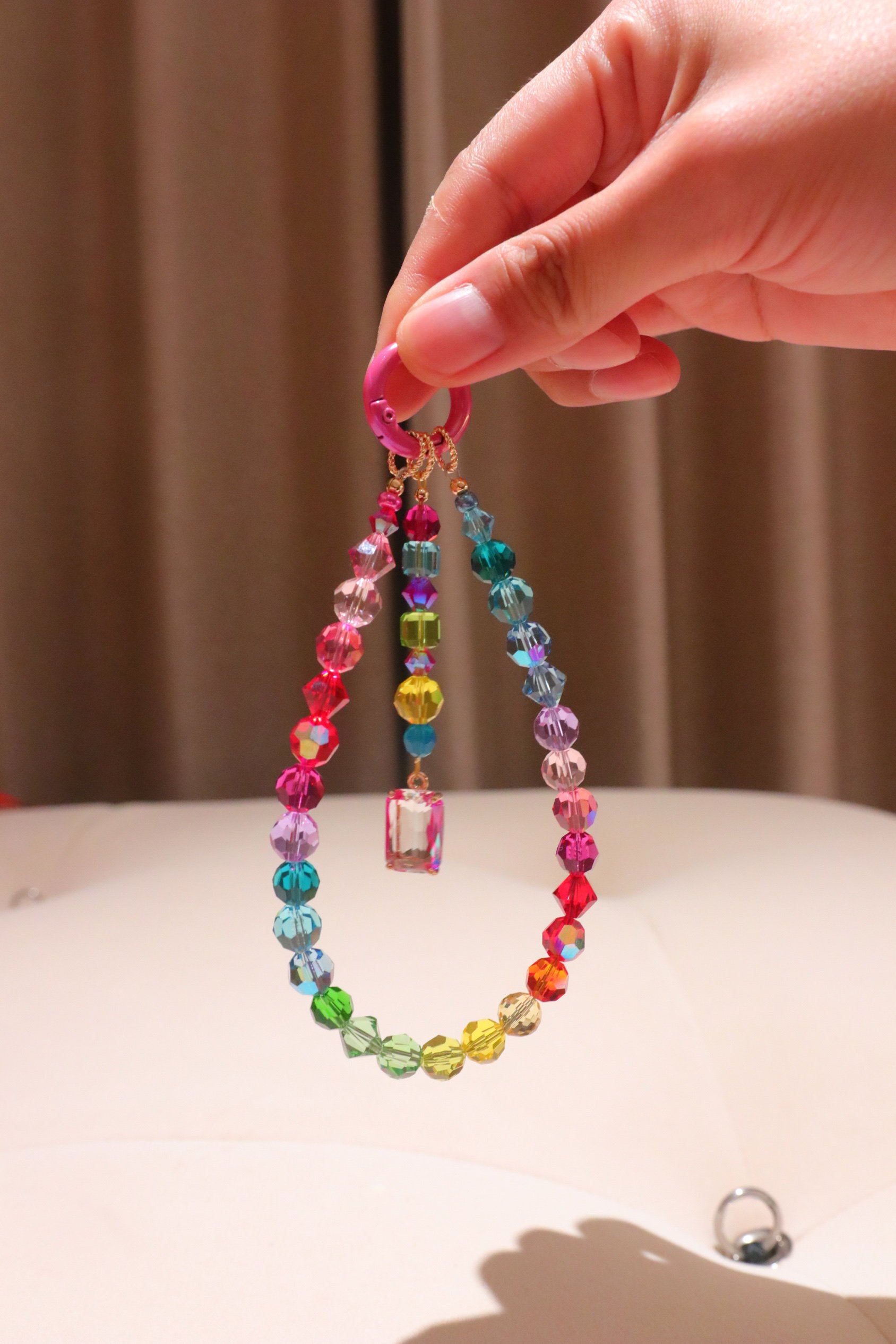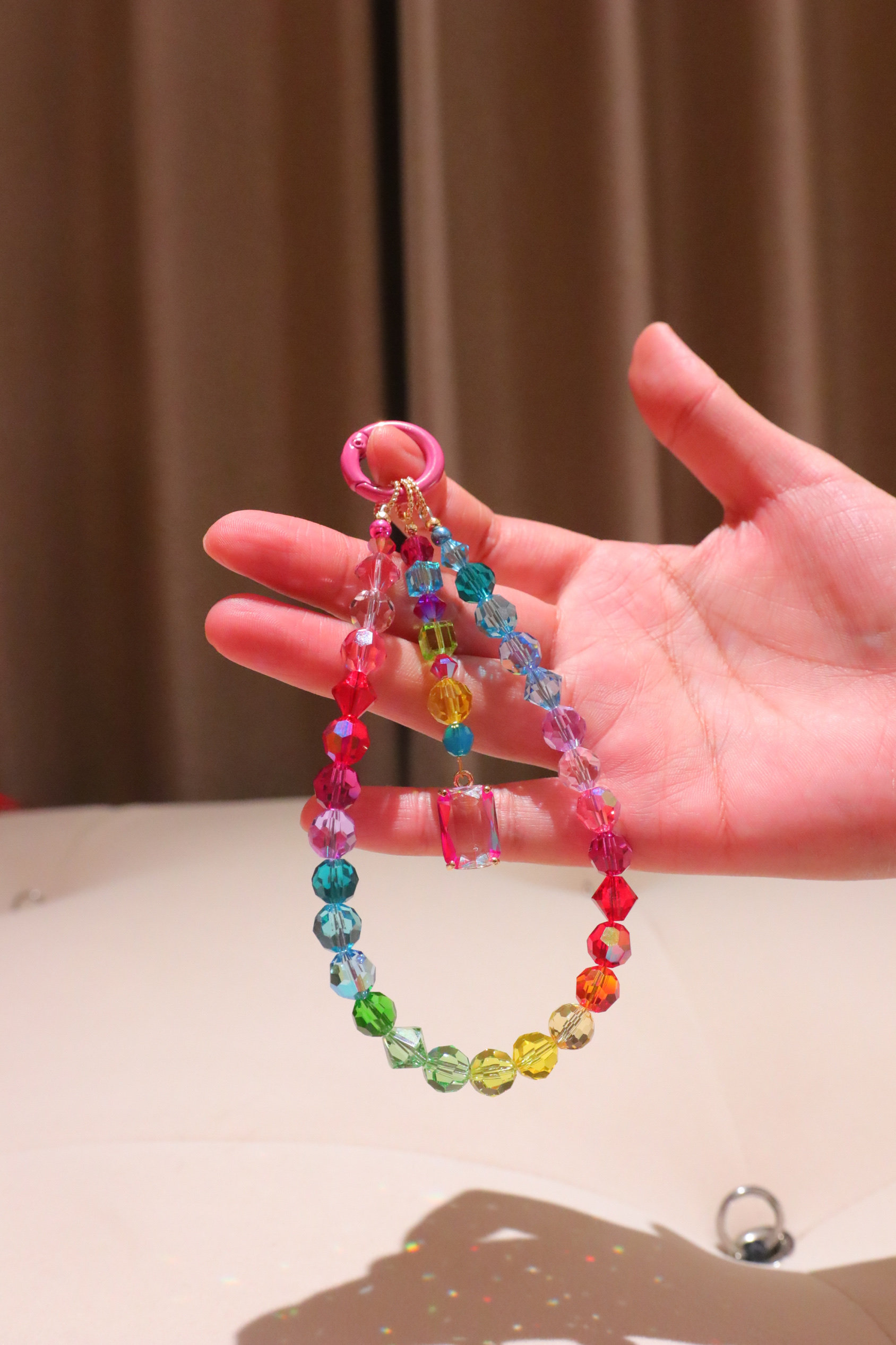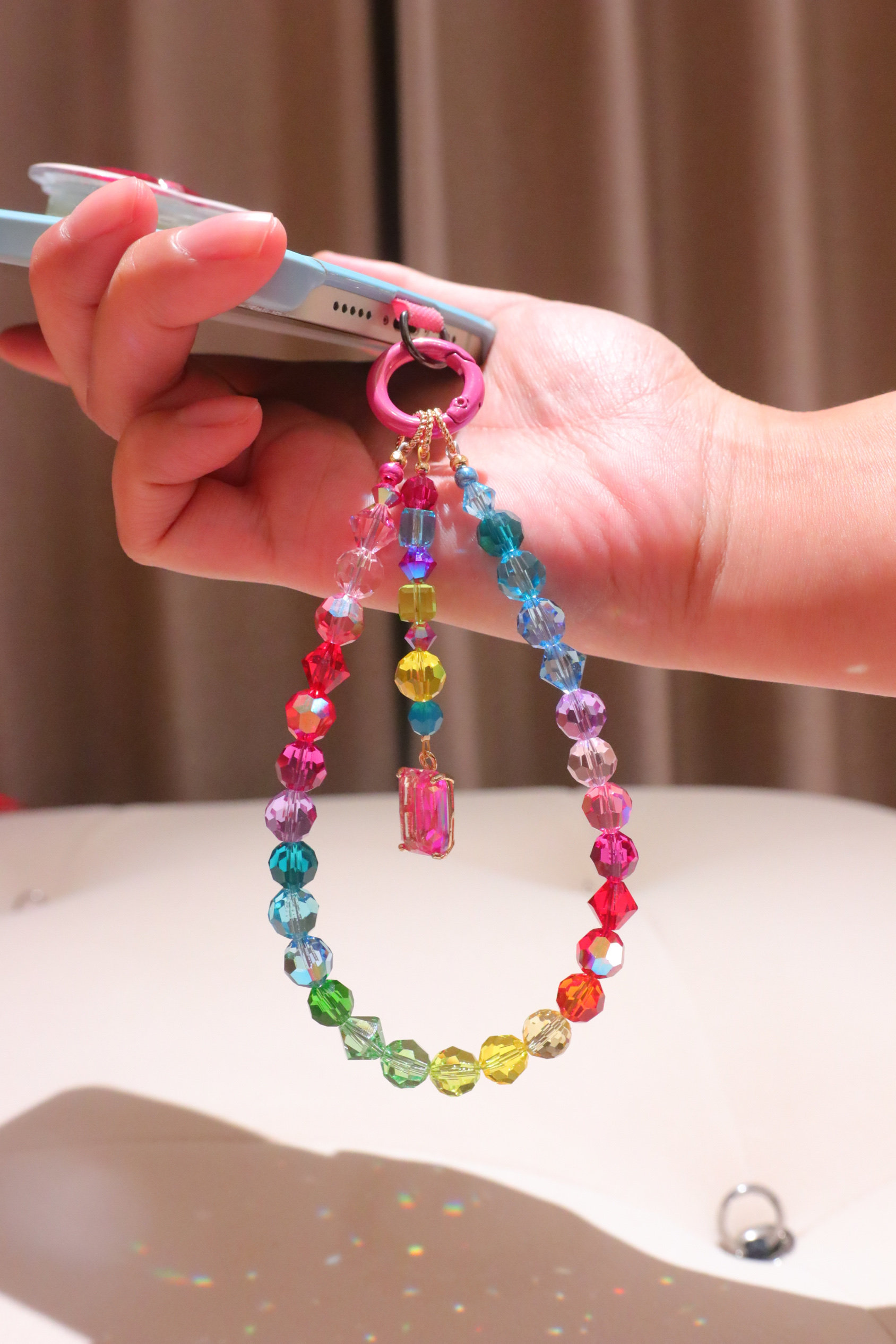 轻奢高级感多巴胺配色彩虹渐变施华洛水晶精致手机链饰品挂饰