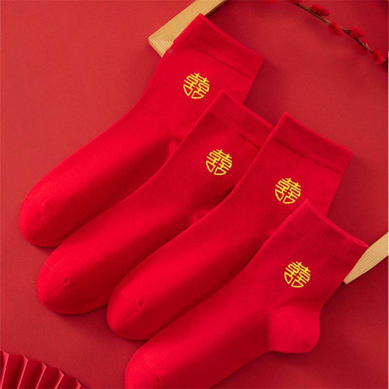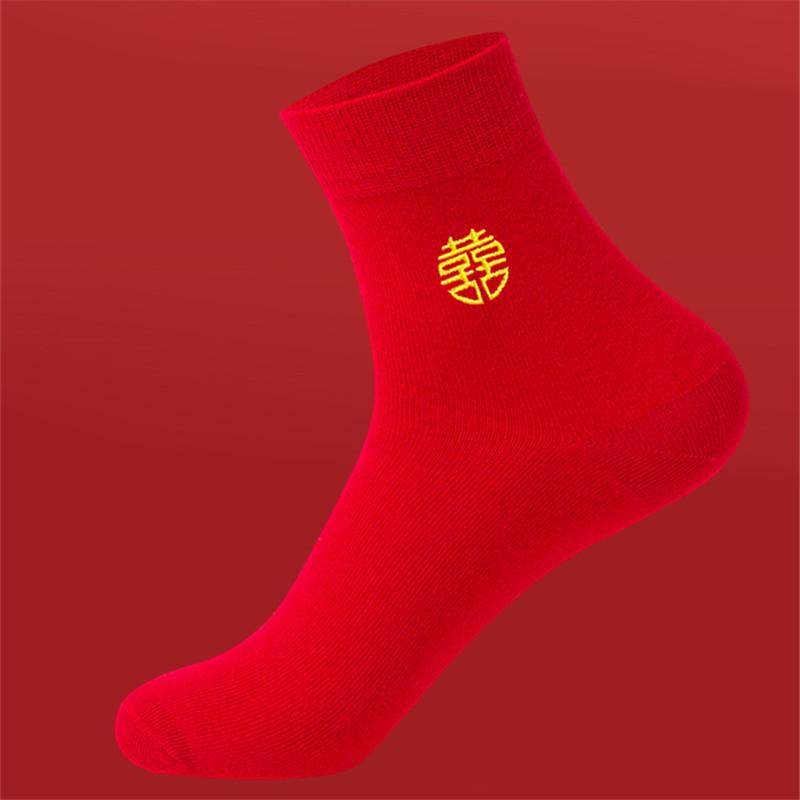 浪莎红色袜子情侣结婚囍字礼物一对男女同款纯棉本命年马年中筒袜