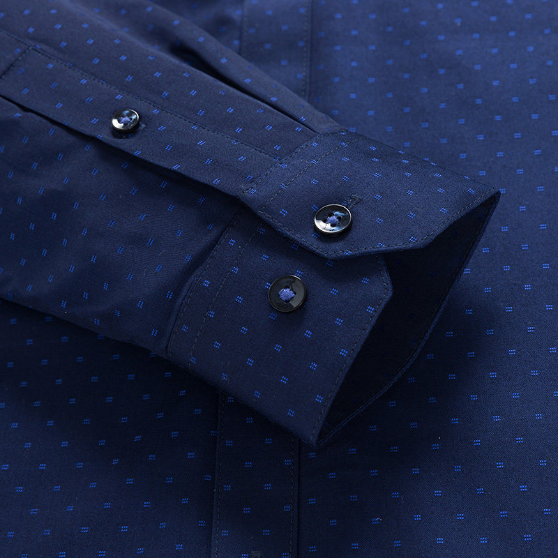 一线撤柜撤标24春秋男士长袖衬衫纯棉免烫修身藏青色印花正装上衣