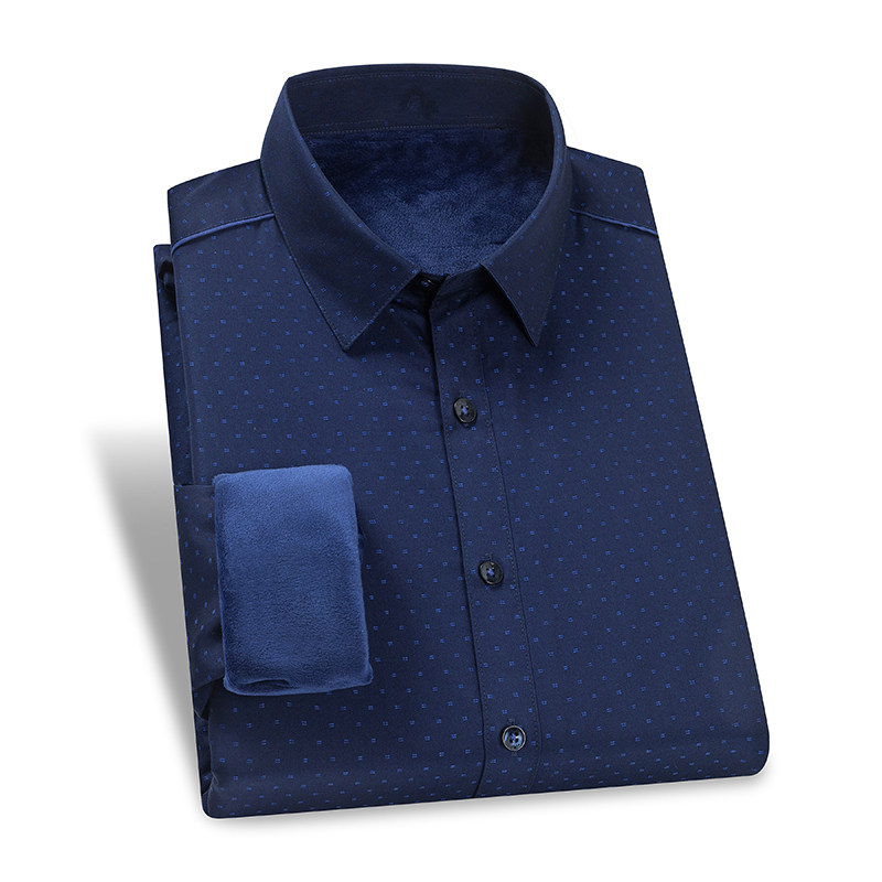 罗蒙加绒加厚衬衫男士冬季商务休闲保暖免烫抗皱衬衣上衣打底衫