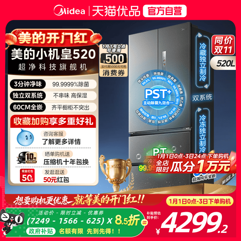 美的M60小机皇520双系统超薄零嵌法式冰箱双开无霜