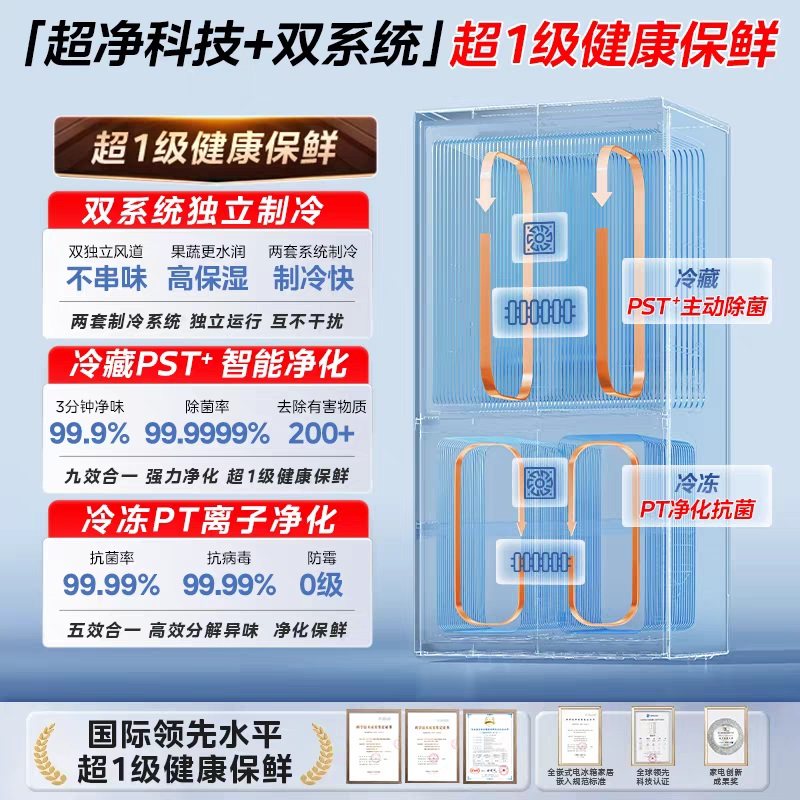 政府换新补贴海尔统帅618L双开对开门大容量无霜一级变频家用冰箱