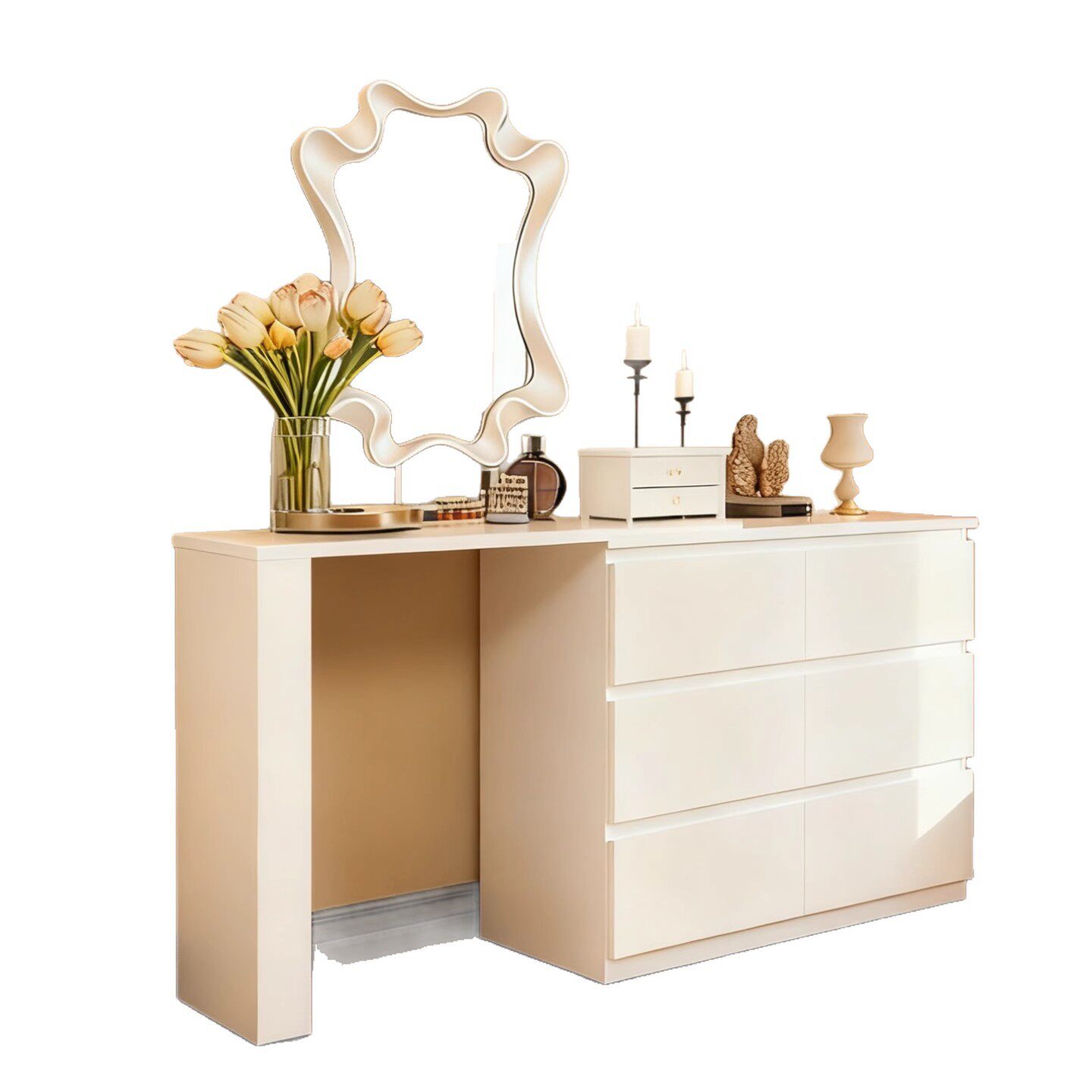 新款钢制梳妆台卧室斗柜梳妆台一体小户型书桌床尾柜化妆台化妆桌