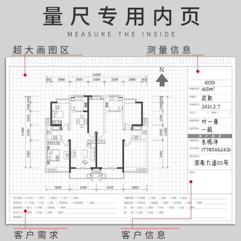 a3量房本室内设计师量房专用本门窗全屋定制衣柜木门窗帘量尺本测
