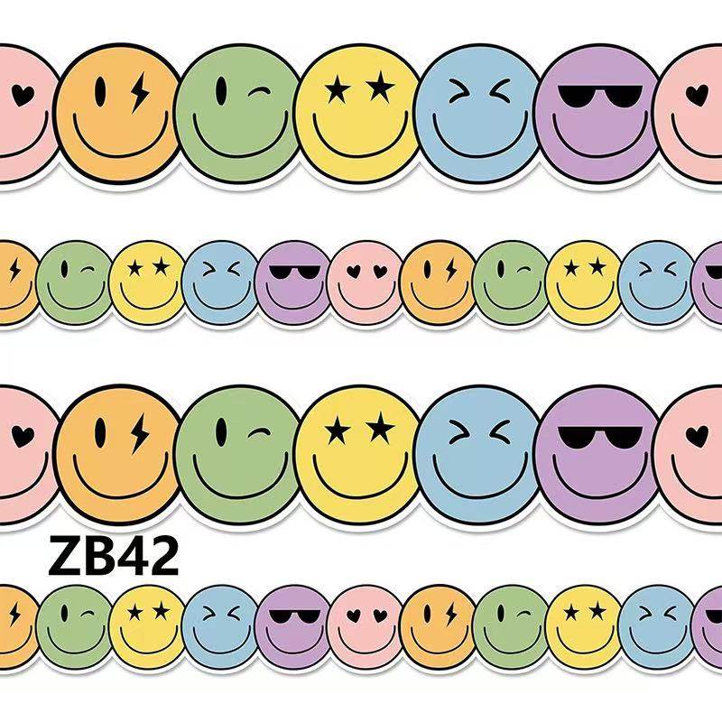 波西米亚快乐脸表情贴纸黑板公告栏边框装饰贴自由剪裁diy标签贴