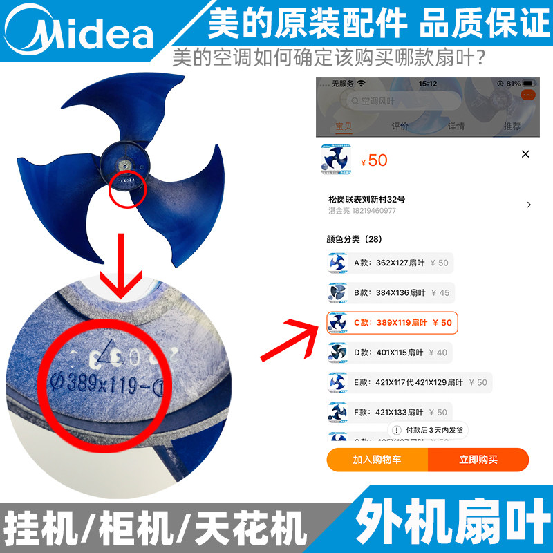 美的空调外机扇叶1-1.5匹挂机2-3-5匹柜机天花机主机散热风叶全新