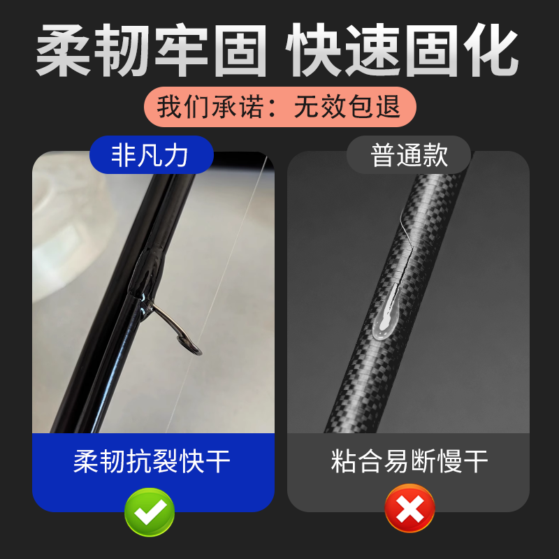 鱼竿专用胶水强力透明粘金属塑料手竿钓鱼竿渔具路亚竿稍绳修补胶海竿导轮开裂修复快干加固焊接可diy专用胶