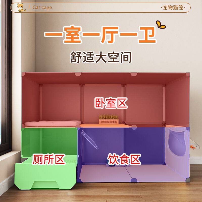 猫笼子自由进出带厕所家用室内超大空间猫别墅一室一厅一卫猫窝