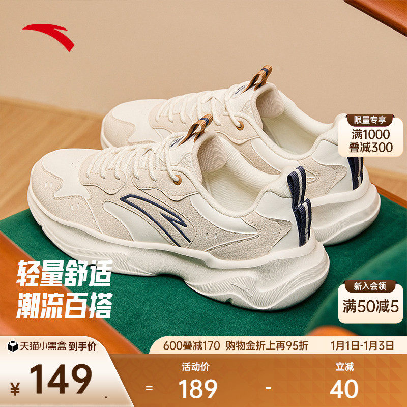 安踏休闲鞋男鞋潮流冬季厚底增高复古革面运动鞋子轻便百搭老爹鞋