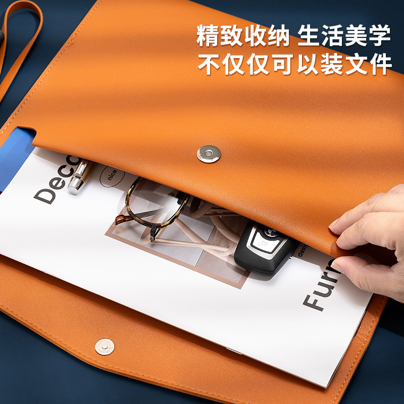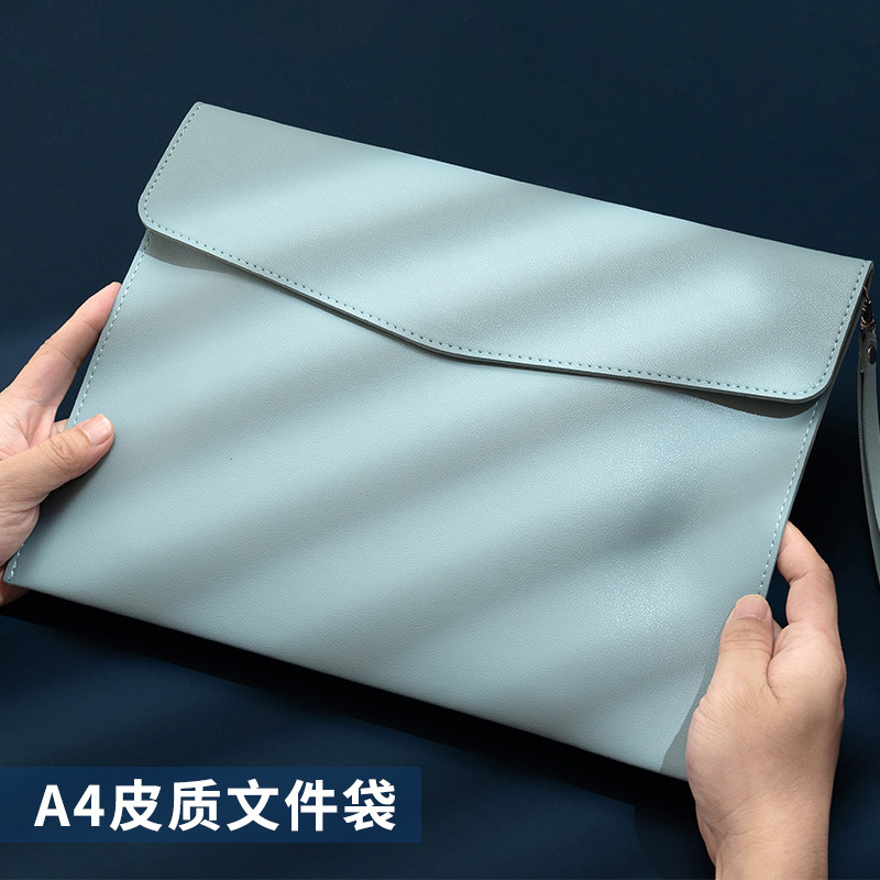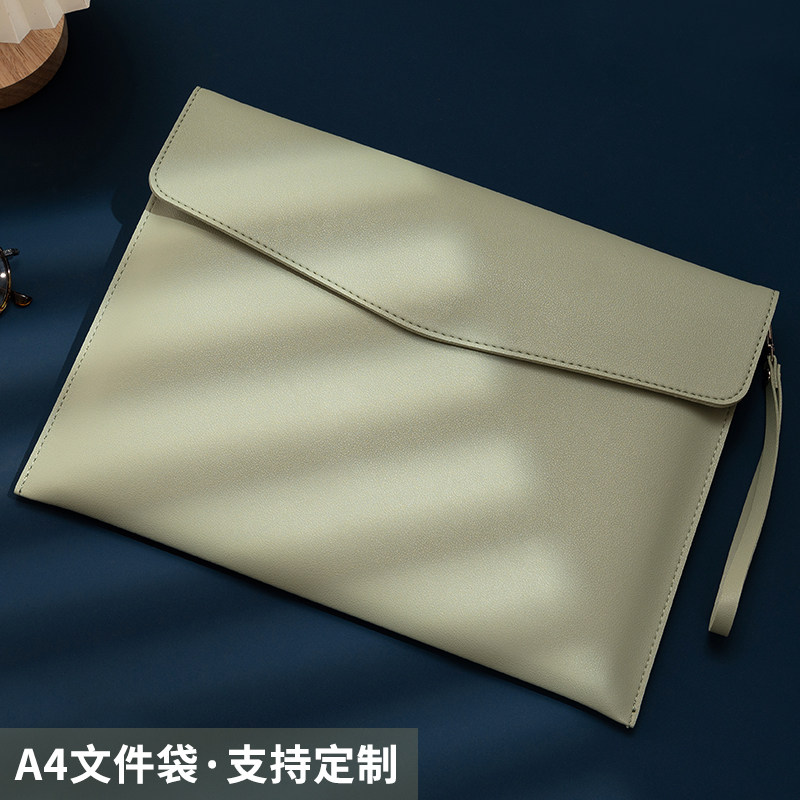 A4文件袋定制皮质手提文件袋大容量简约收纳资料袋加厚男士商务会议公文包合同文件包办公档案袋防水可印LOGO