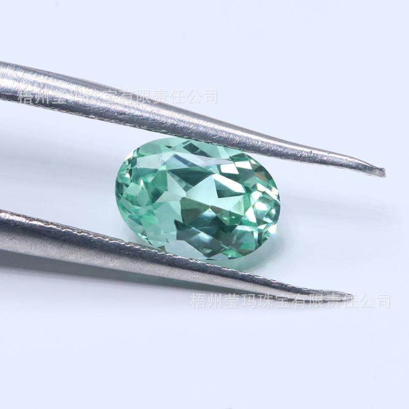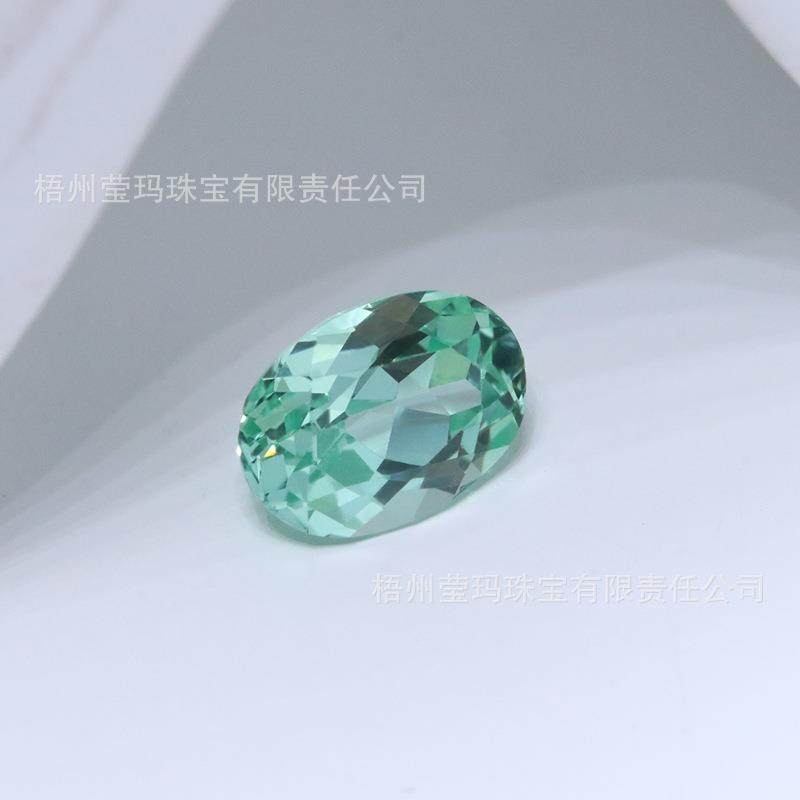 蛋形培育彩宝绿宝 实验室人工培育椭圆形绿色宝石源头厂家直销