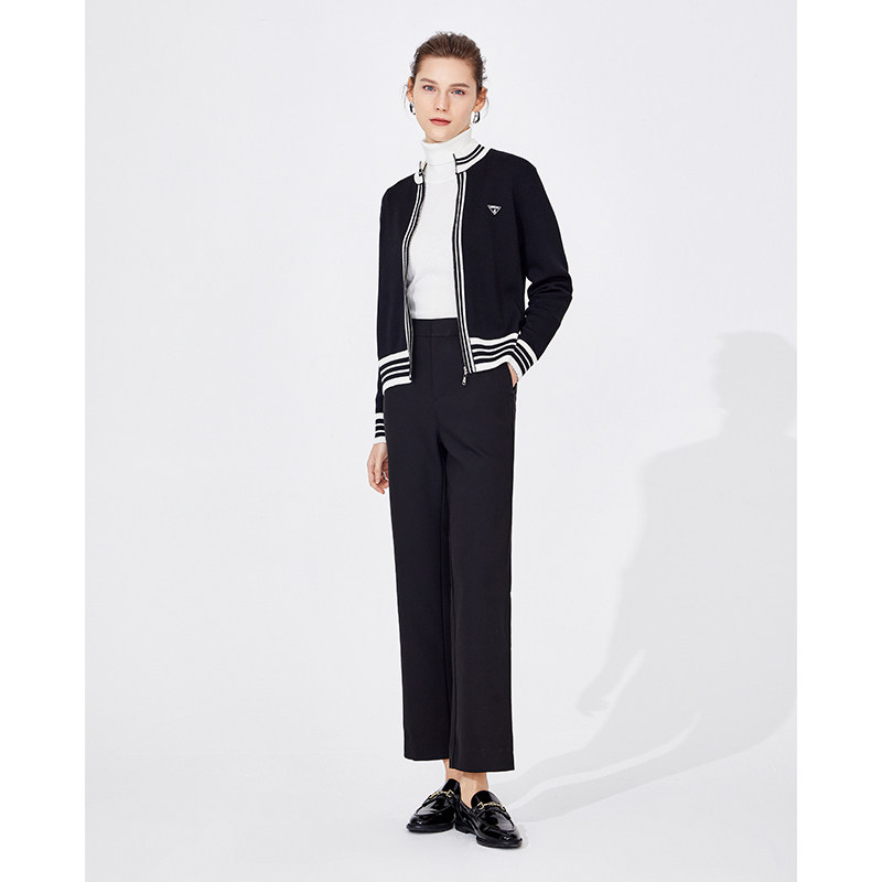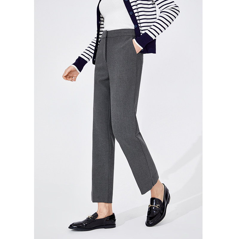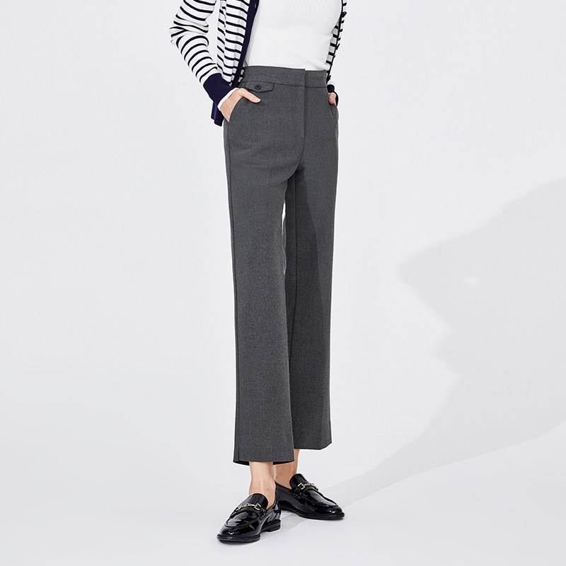 Navigare意大利小帆船秋季新款灰色休闲裤女士商务西裤微喇九分裤